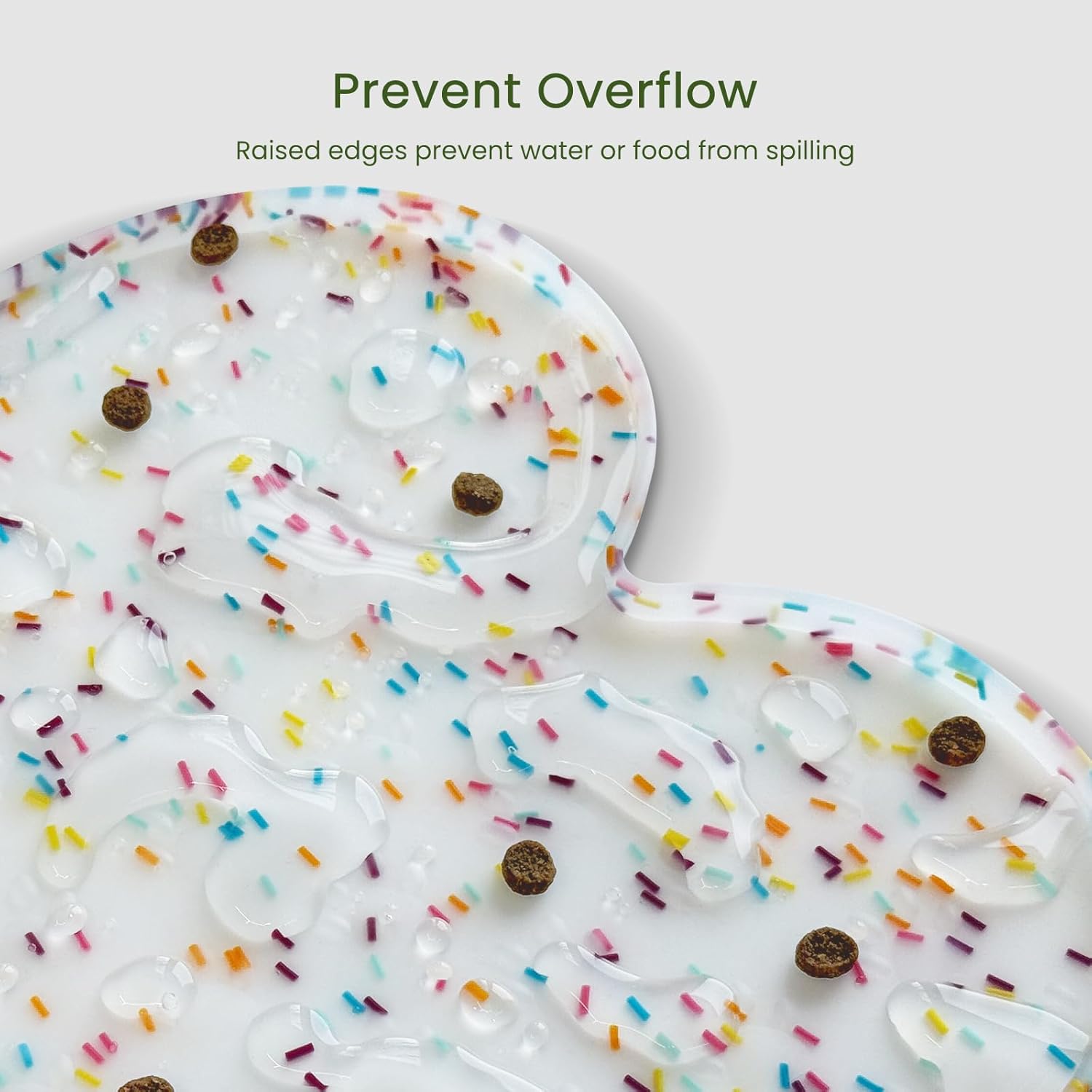- Raised Edge - The high edge of this feeder mat keeps food and water within the tray and prevents spillage onto a clean floor. Keep your living space tidy and clean, say goodbye to messy floors, you just need to clean the dog bowl mat regularly.