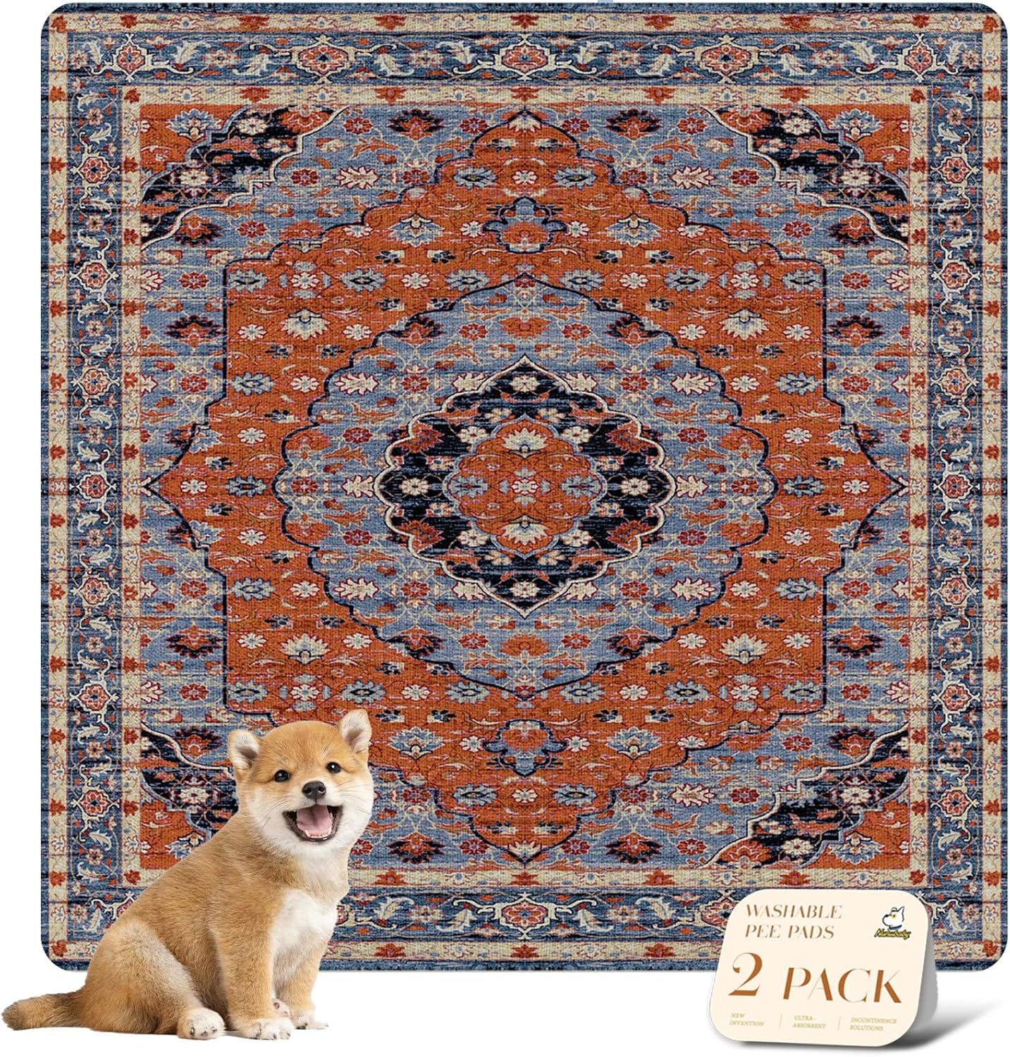 nunubaby Washable Pee Pads for Dogs, Stylish, Non-Slip and Leak-Proof Pee Pads. Reusable Potty Pads for Dogs for Crates and Floors.(Red/Floral, 36" x36")
