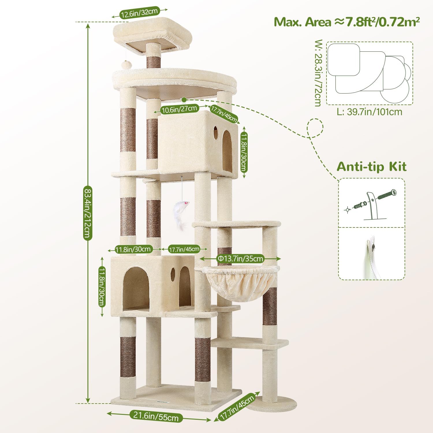 Globlazer Giant Cat Tree, 83 inch Cat Tree for Indoor Cats Large Adult, XXL Cat Tower with 9 Scratching Posts for 20lb+ Heavy Duty Large Adult Cats, F83, Beige