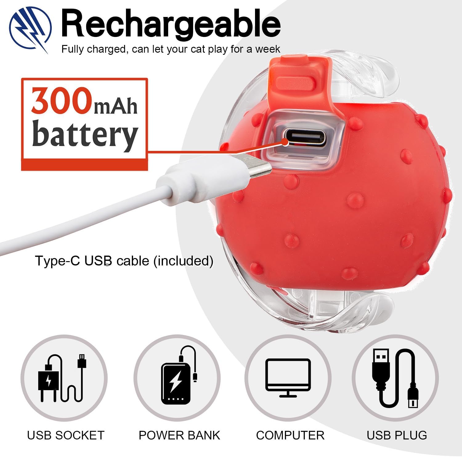- Fast Charging & Eco-Friendly - USB Type-C rechargeable (cable included); 300mAh rechargeable battery and easily fully charged in 30 mins, no disposable batteries needed. Non-toxic silicone and ABS materials withstand scratches, convenient for cleaning.