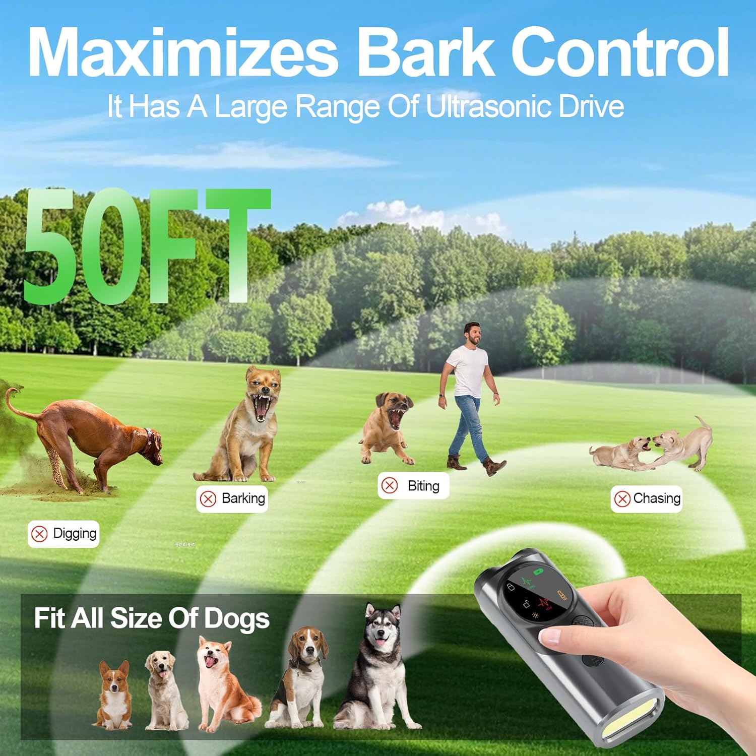 - 【Safe & Dog - Friendly】Is your dog a chronic barker, a digger, a chaser, or a chewer? No need to worry! You’ll be amazed at how rapidly and painlessly your pooch responds to this state - of - the - art no bark training gadget. This anti barking device for dogs offers two distinct modes, all with one common goal: to immediately catch your dog’s attention and put a stop to those unwanted actions. Dog bark deterrent devices ultrasonic feature ensures a gentle yet effective training experience.