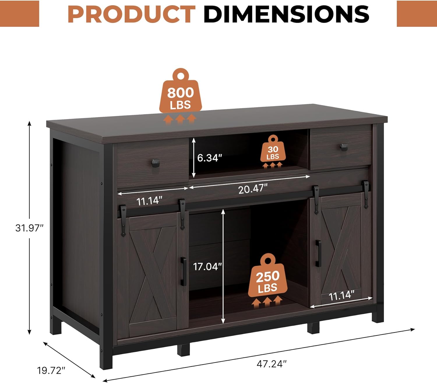 Miereirl 55-75 Gallon Fish Tank Stand with Power Outlet – Heavy Duty Aquarium Stand, Rustic Farmhouse Style, 800 lb Capacity, Adjustable Storage & Sliding Barn Doors, Dark Brown