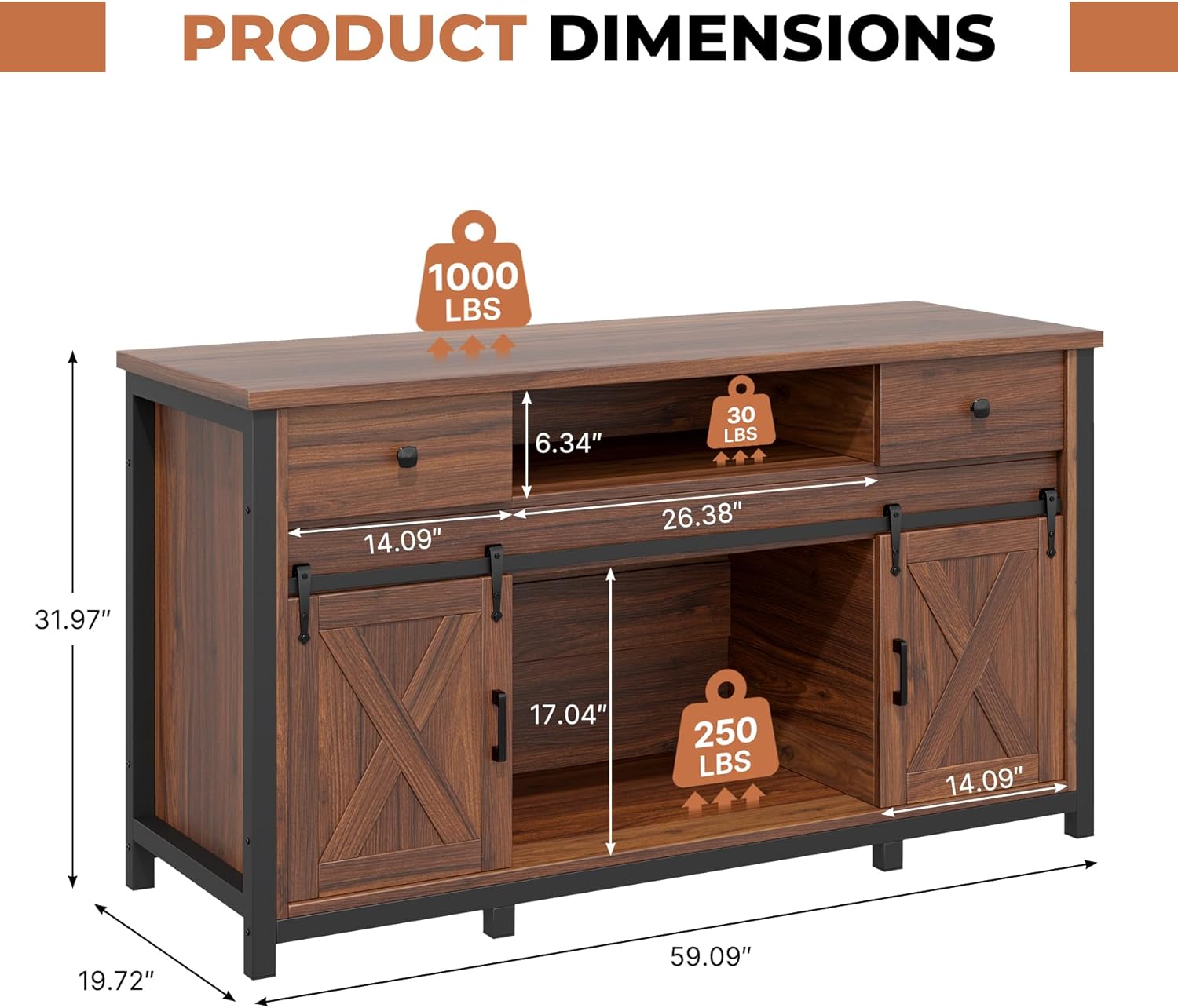 Miereirl 75-120 Gallon Fish Tank Stand with Power Outlet – Heavy Duty Aquarium Stand, Rustic Farmhouse Style, 1000 lb Capacity, Adjustable Storage & Sliding Barn Doors, Light Brown