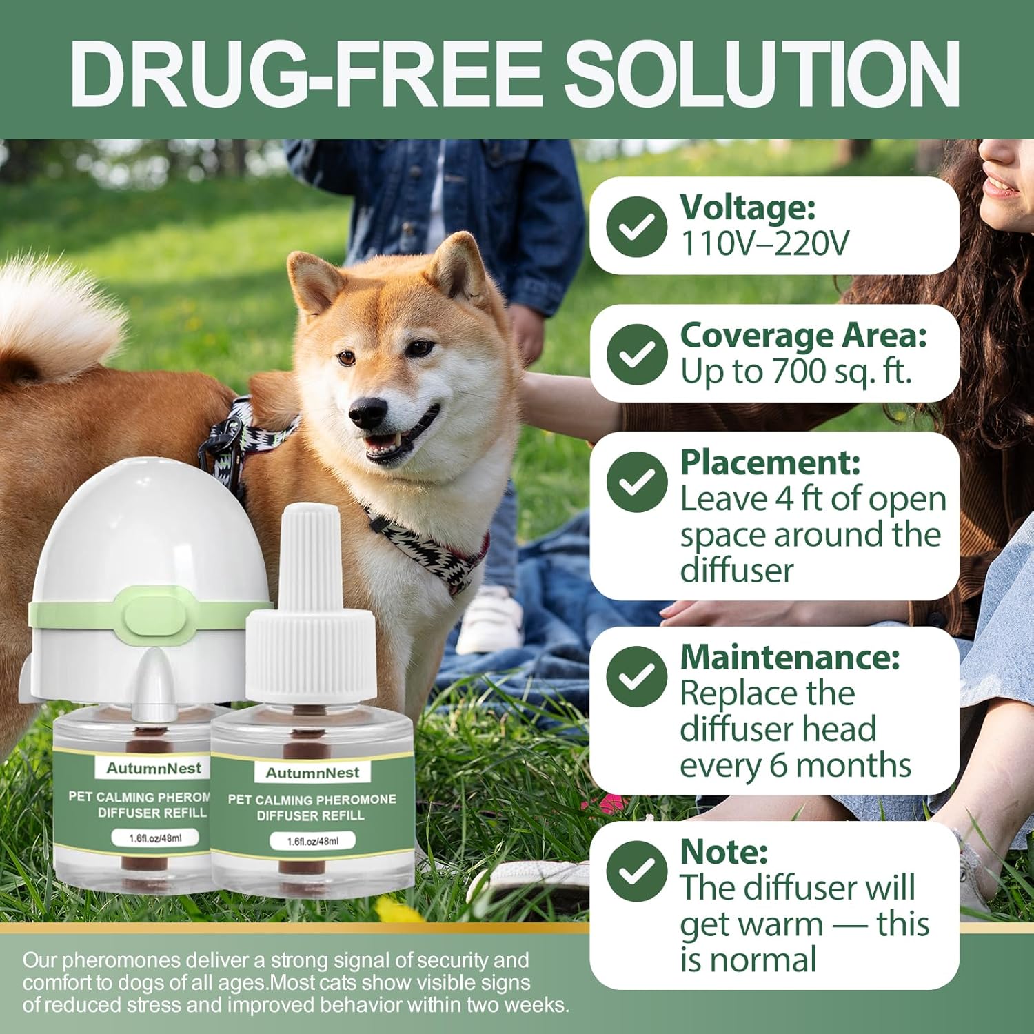 - 【Soft Glow Design for Reassurance at Night】 AutumnNest diffuser emits a gentle soft glow when plugged in, providing subtle comfort for dogs sensitive to darkness, while allowing owners to easily check operation status.