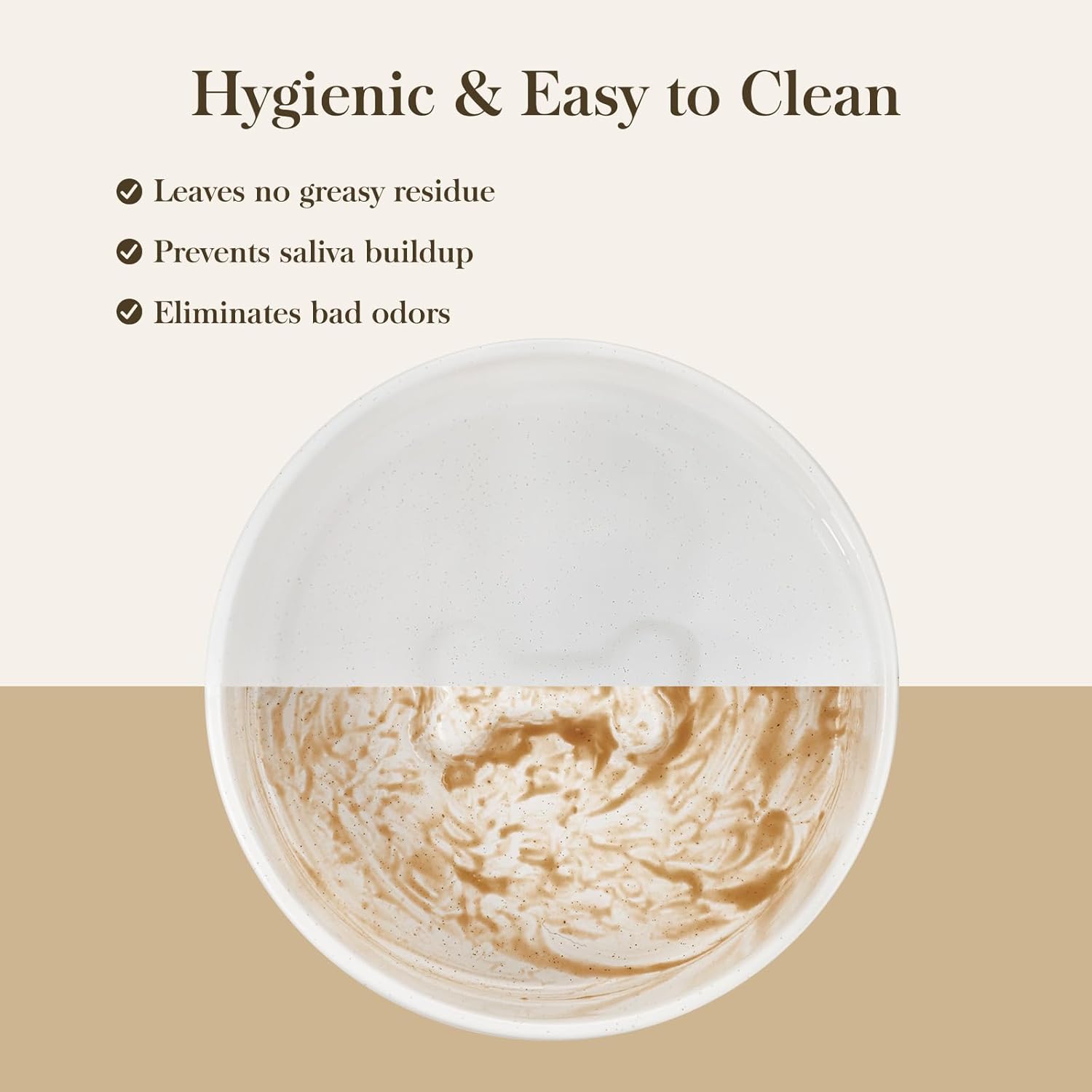 - EASY TO CLEAN: Featuring an active glaze finish and weighted ceramic construction, these dog bowls are easily washed by hand or dishwasher. The microwave-safe design allows you to conveniently heat your pet's food at any time.