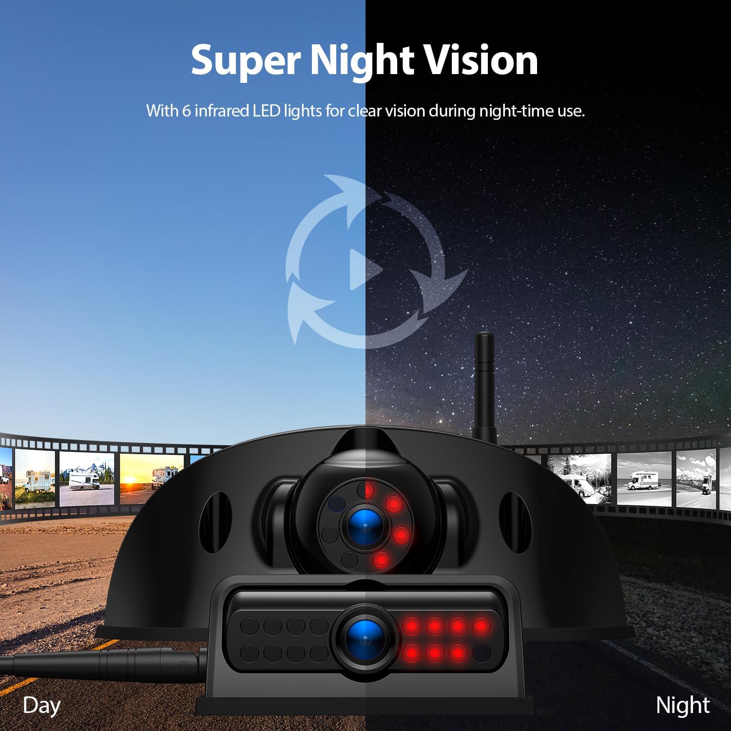 - IP69 Waterproof Camera with Night Vision: The IP69 waterproof rating ensures reliable performance in extreme weather conditions, such as heavy rain or snow. With a 120° viewing angle, it provides a perfect rear view. Equipped with 6 infrared lights and a light sensor, the infrared lights automatically activate in low-light environments, delivering clear and HD images continuouisly.