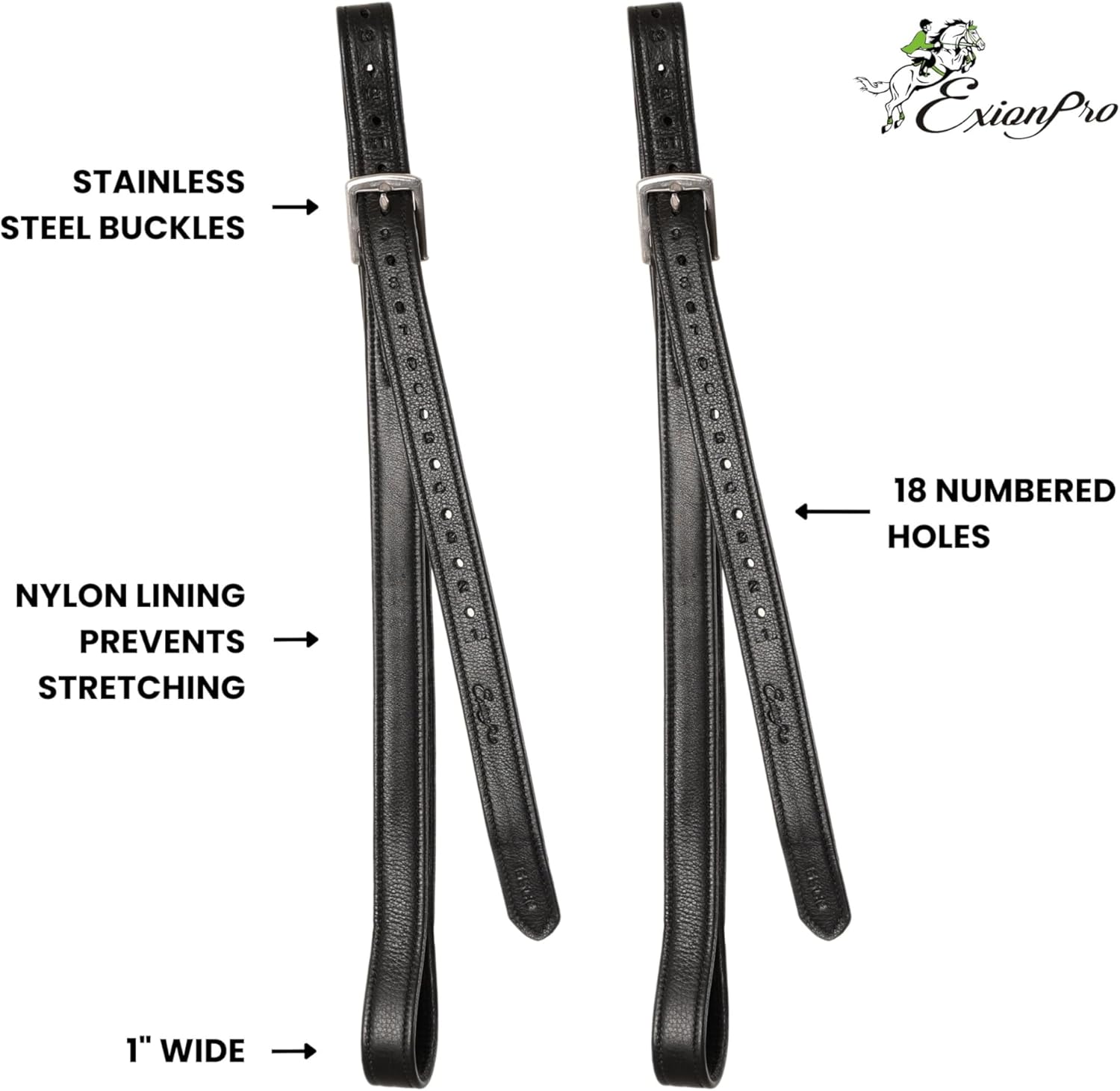 - ✅ SECURE FIT BUCKLES – Heavy-duty stainless steel buckles offer a rust-free, strong connection to your saddle’s stirrup bars.