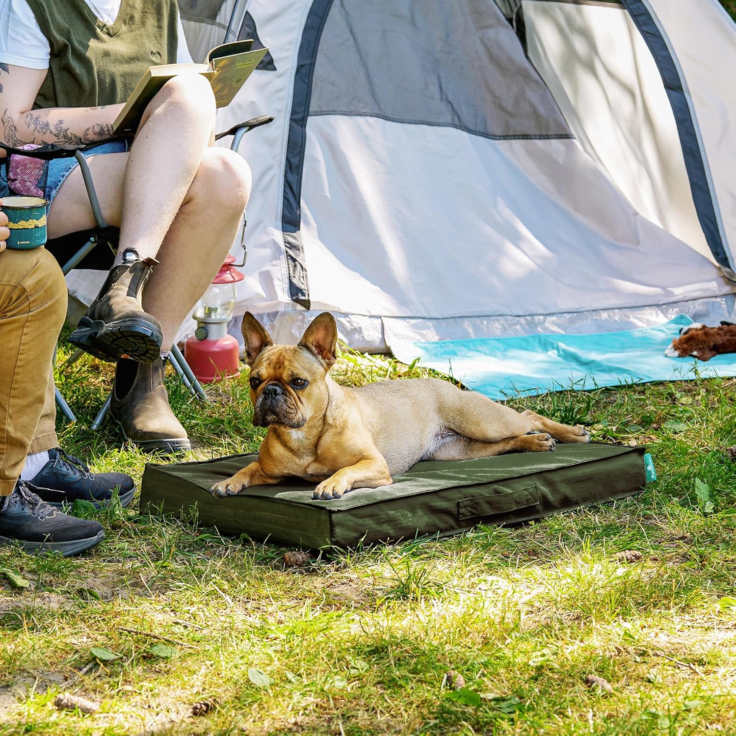 FurHaven Cooling Dog Bed – Medium Foam Mattress for Joint Pain Relief, Waterproof Liner, Removable Washable Cover, Durable for Outdoor Use, Deluxe Grid Indoor/Outdoor Bed – Green, Medium