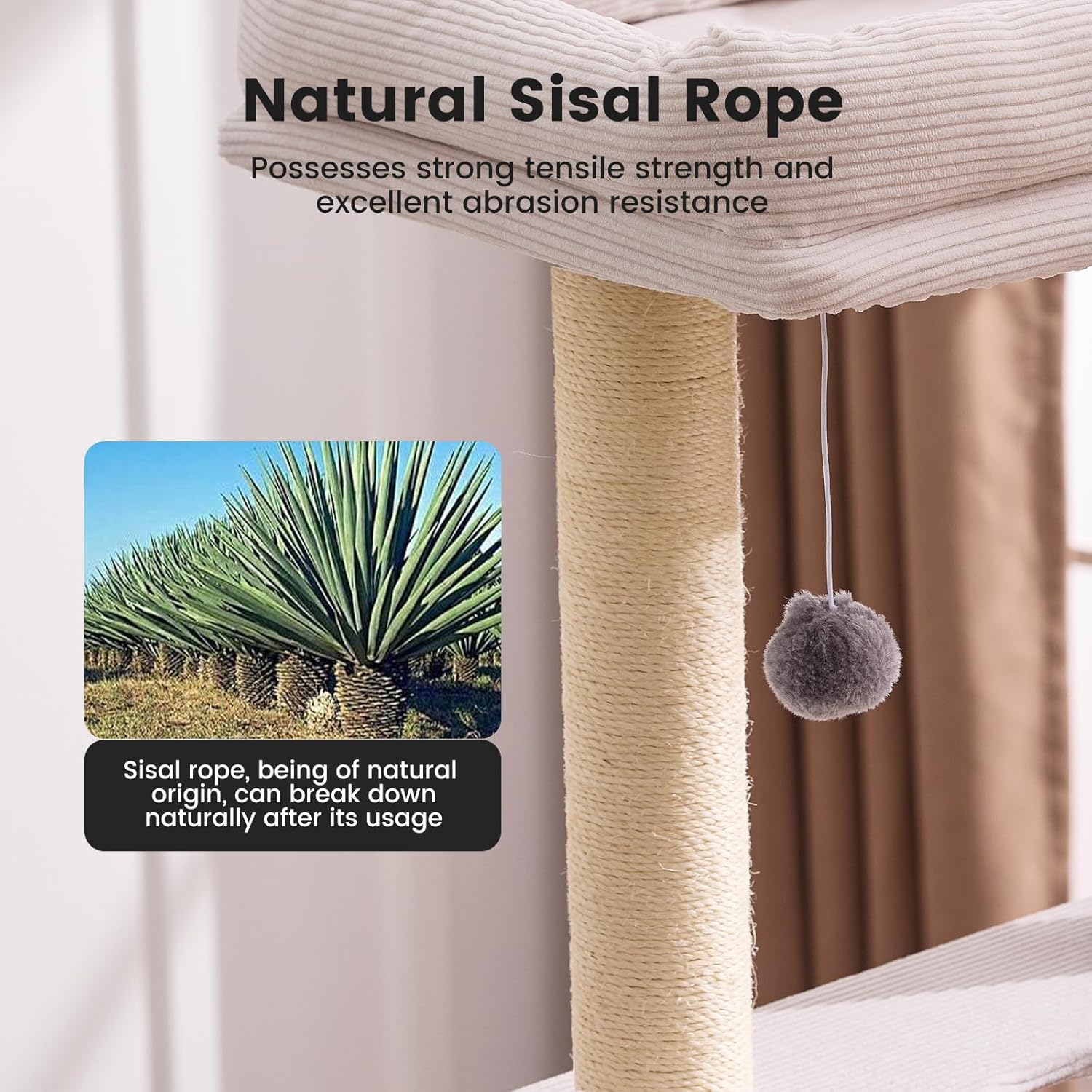 Gardner Pet 65in Heavy Duty Cat Tree Tower for Large Cats, Multi-Level Cat Furniture with Replaceable Sisal Scratching Post, Hammock | Extra-Large Platform & Condo Easy to Clean (Corduroy)