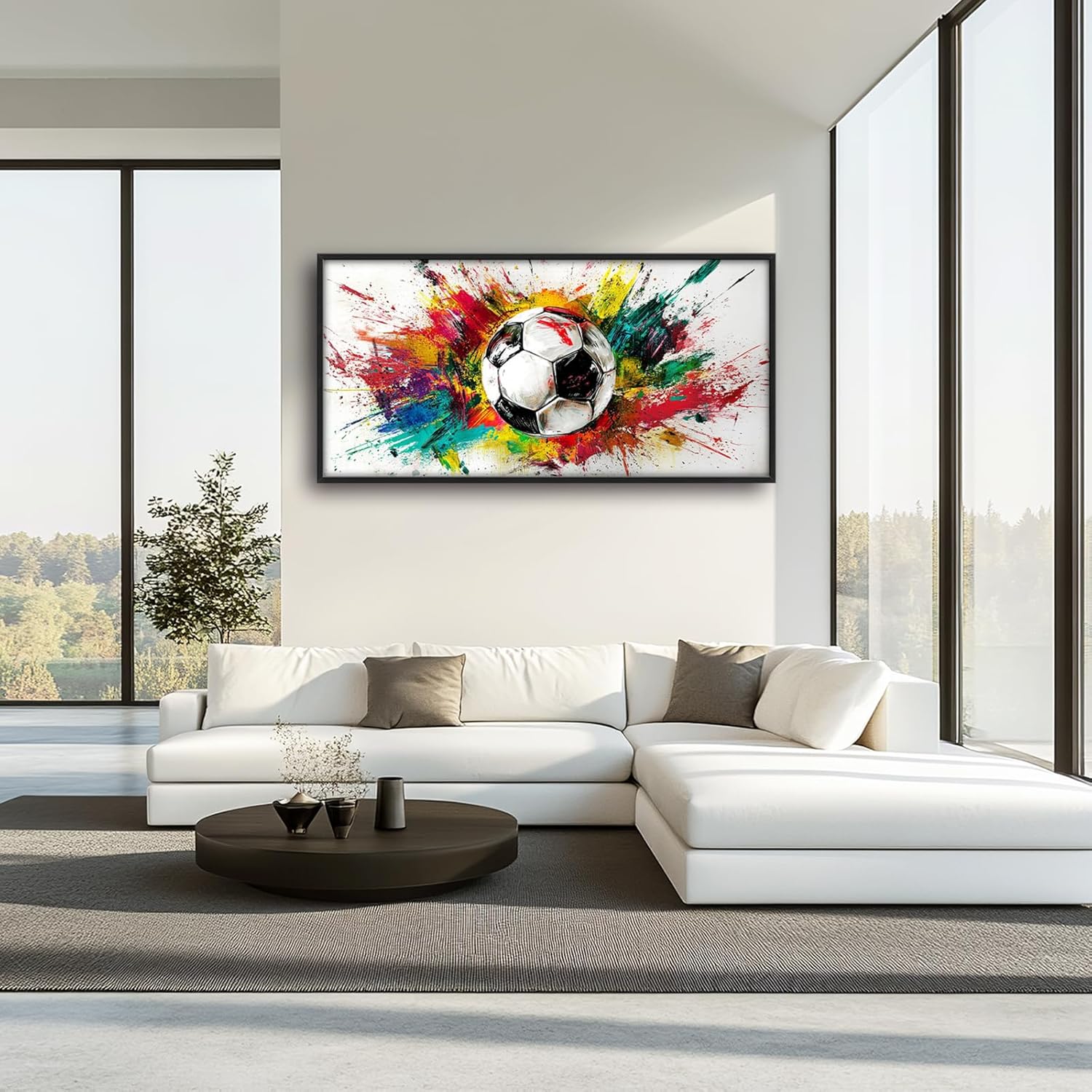 Extra Large Framed Soccer Wall Art,Oversized Colorful Graffiti Sport Ball Wall Decor Pictures for Living Room,Canvas Print Painting Modern Artwork Bedroom Office Bathroom Home Decor 60L x30W