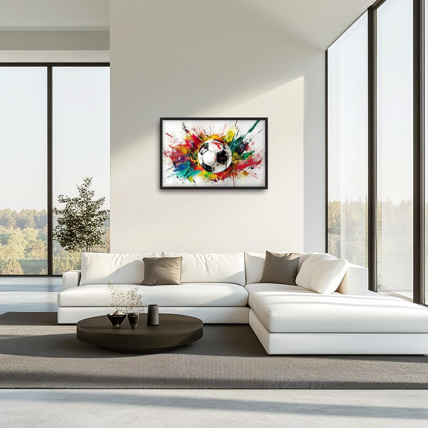 Extra Large Framed Soccer Wall Art,Oversized Colorful Graffiti Sport Ball Wall Decor Pictures for Living Room,Canvas Print Painting Modern Artwork Bedroom Office Bathroom Home Decor 36L x24W
