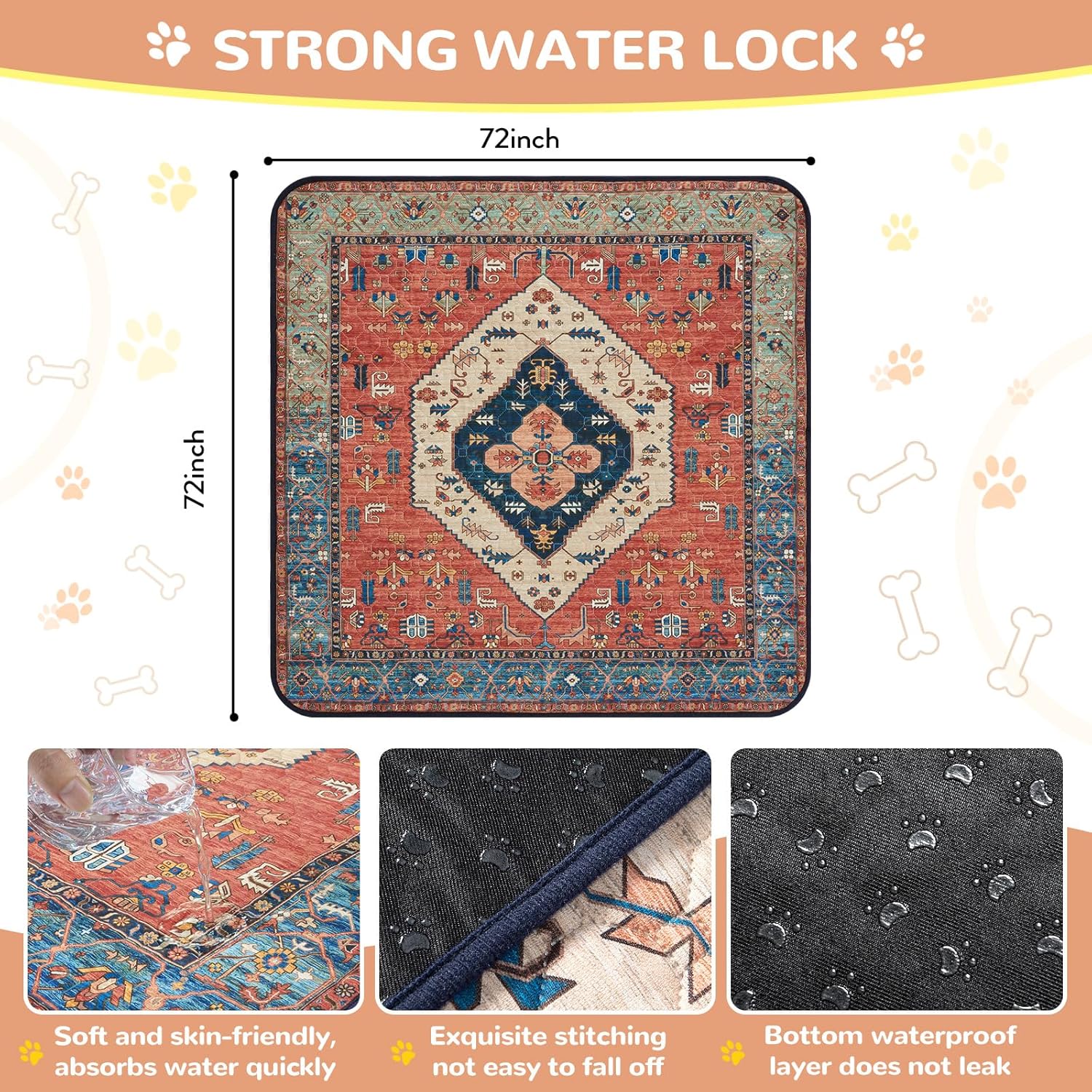 Lahome Extra-Large Washable Dog Pee Pads (72"x72") - Super Absorbent & Waterproof - Leakproof Reusable Mat for Playpens, Beds & Whelping, Convenient Cleanup,Red