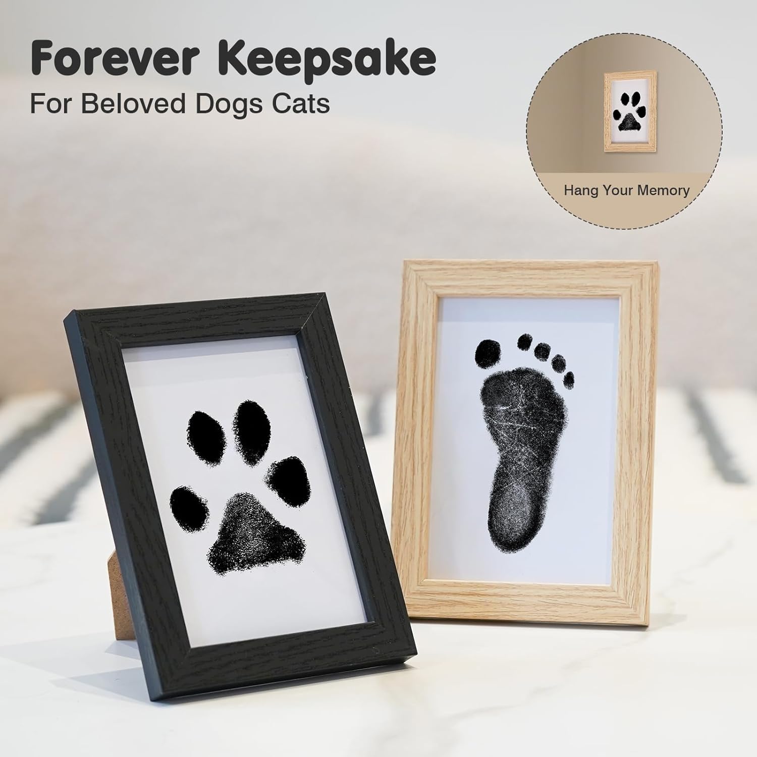 - Complete Keepsake Gifts: This pet paw print impression kit includes 4 pcs of inkless ink pads,8 imprint cards and 2 wooden frames, making it the perfect way to preserve and display your pet's or baby's first prints. An ideal gifts for new moms or pet lovers, capturing memorable moments for a lifetime.