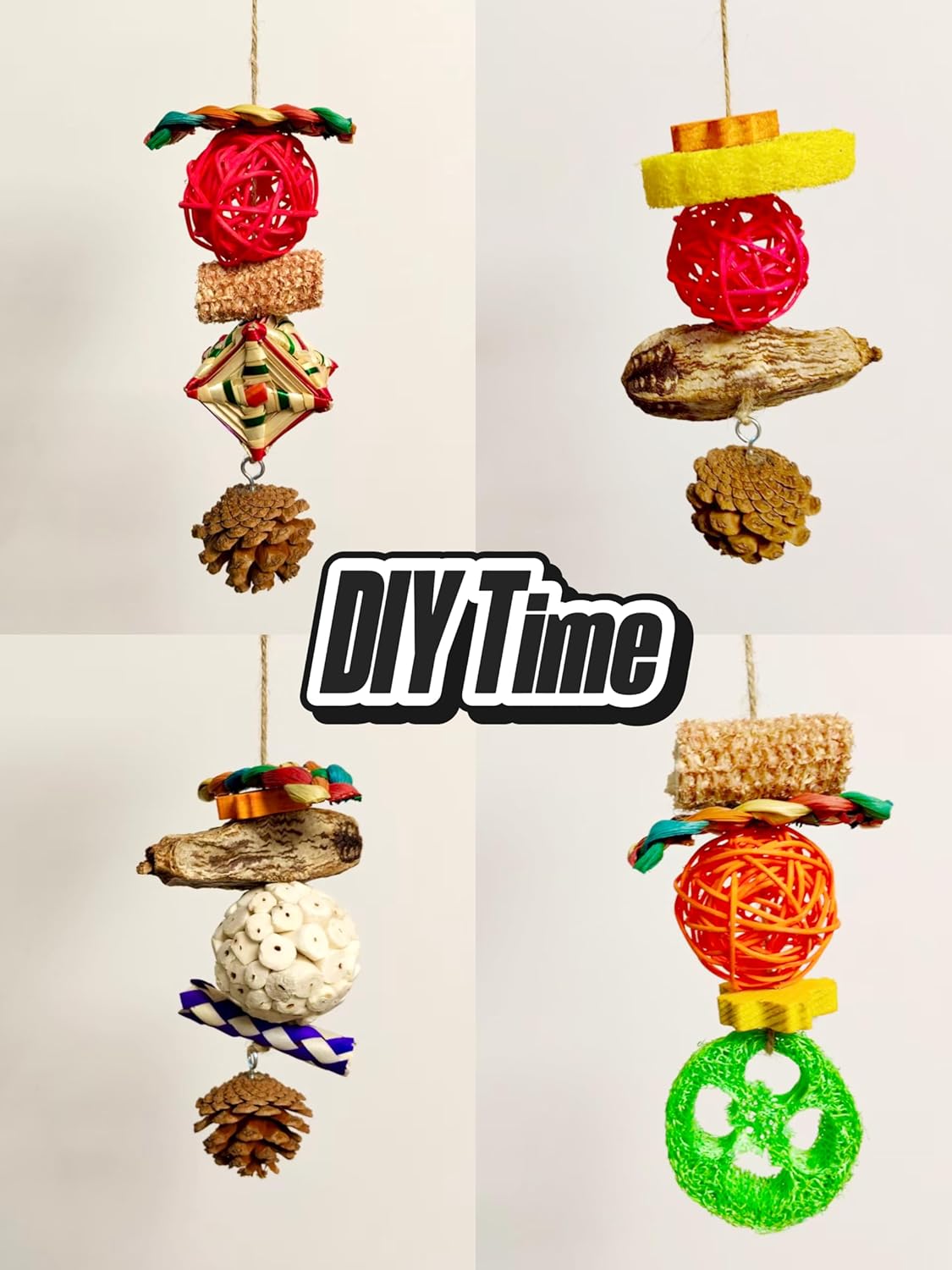 - 🌿 IGNITE NATURAL FORAGING INSTINCTS: The Crimson-bellied Conure toys for medium birds unleash their inner explorer! From crinkly loofah sponges to rugged pine cones with wooden pegs, each piece in our 10-piece set mimics nature’s puzzles. Watch them peck, shred, and problem-solve—turning snack time into a jungle survival challenge