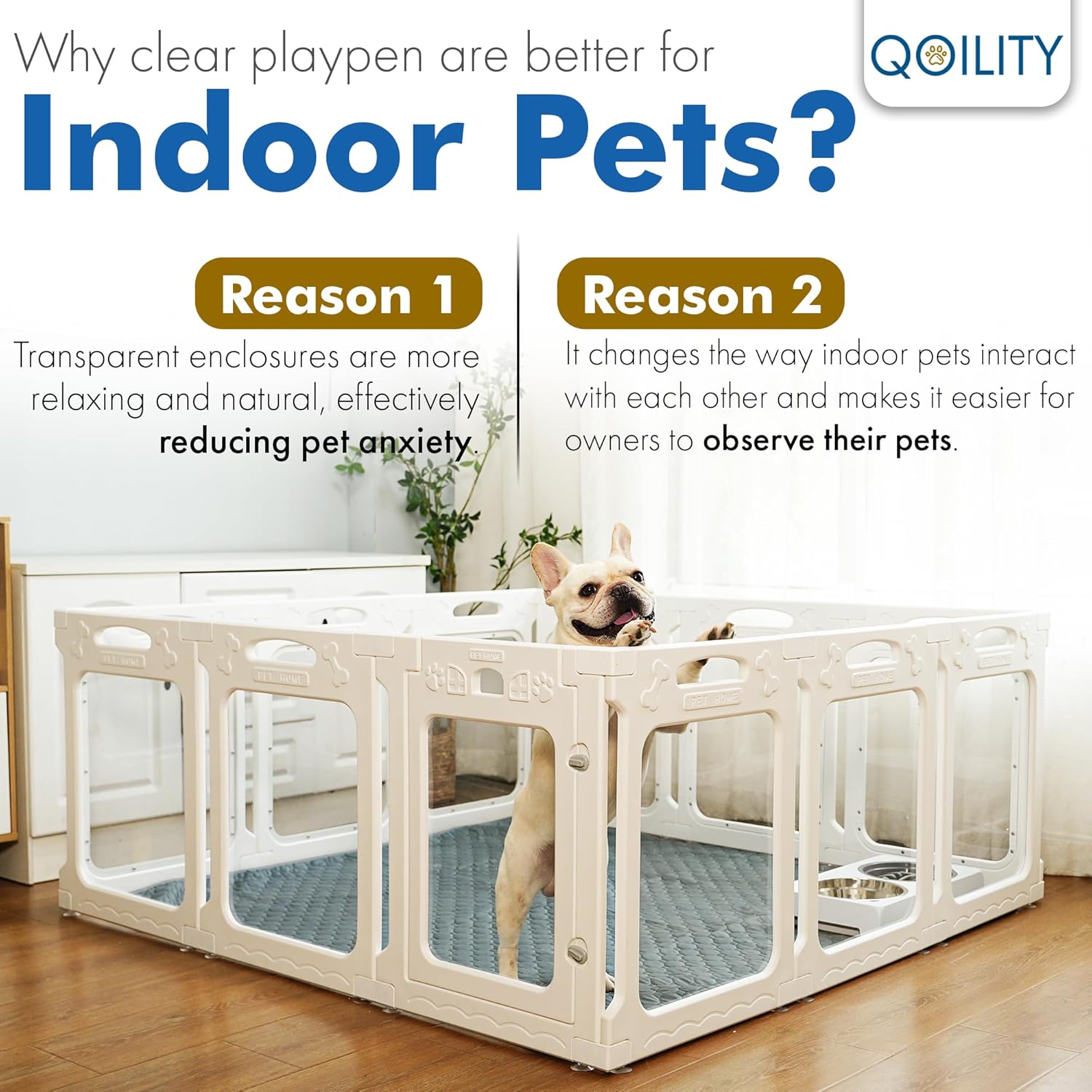 Clear Dog Playpen Indoor, Effectively Relieves Pet Anxiety, Suitable for Most Dogs, White