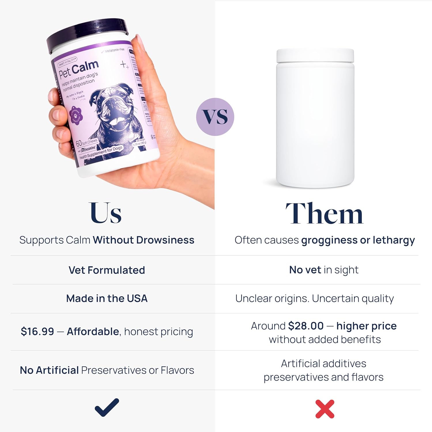 Veterinary Formula Pet Calm 60ct – Vet-Formulated Calming Chews for Dogs with L-Theanine, L-Tryptophan for Behavior Support, Relaxation Treats, Puppy Chews for Stressful Situations, Dog Calming Aid
