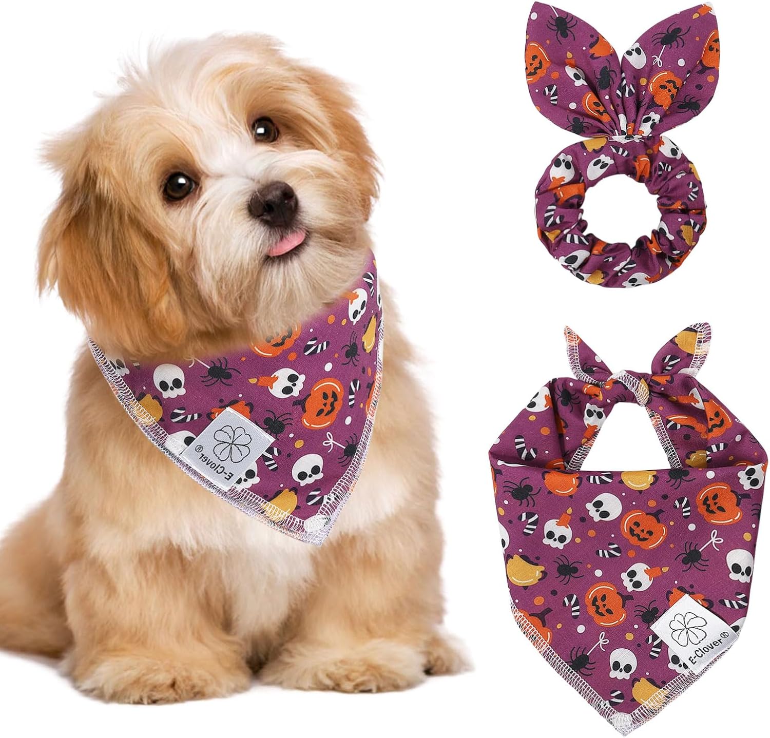 - Matching Bandana and Scrunchie Set: When your pet is wearing a purple handkerchief and you are wearing a bow headband, it's very fun for you to cause trouble and ask for candy together on Halloween! When traveling, sleeping, taking photos or daily warking, adorable fall dog bandana and scrunchie is a pretty accessories.The the hair tie can be worn as a wrist accessory and hold your hair.