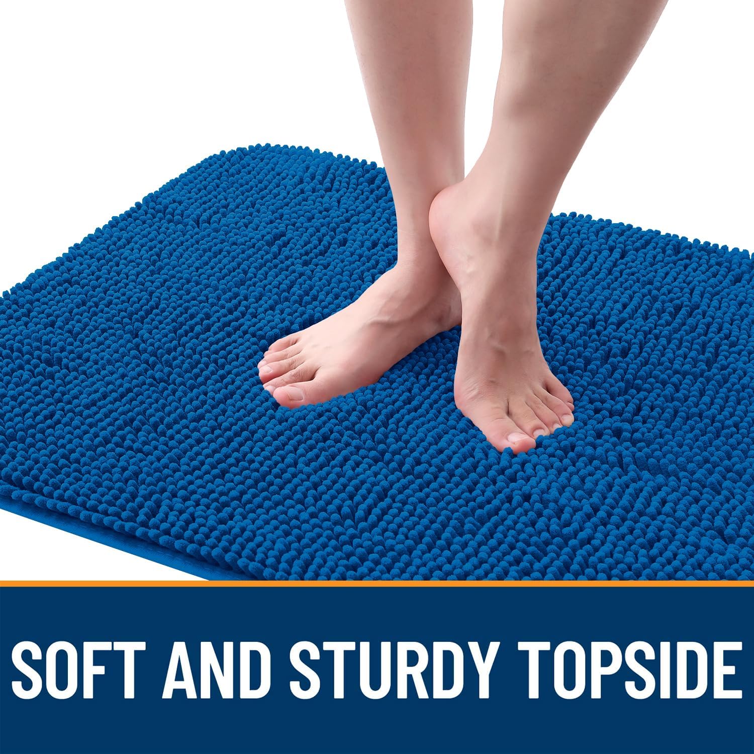 OLANLY Dog Door Mat for Muddy Paws 44x24, Absorbs Moisture and Dirt, Absorbent Non-Slip Washable Doormat, Quick Dry Chenille Mud Mat, Entry Indoor Entryway Carpet for Inside Floor, Deep Navy Blue