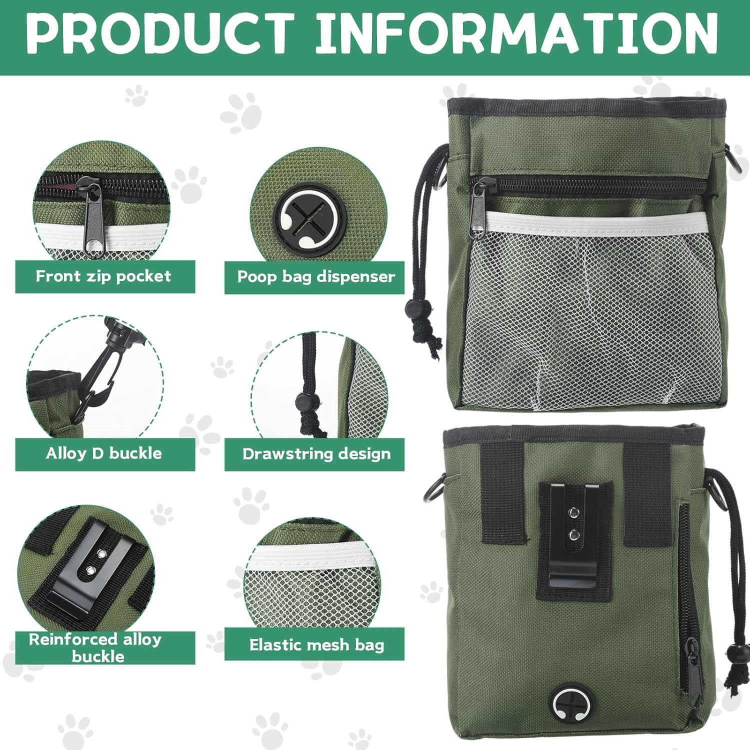 - Reliable to Store: the dog walking fanny pack is made of quality 600D oxford cloth and net cloth, credible and safe, not easy to fade, break or leak; With drawstring closure design, the bag can keep your pet treats safe, without worrying about leaking