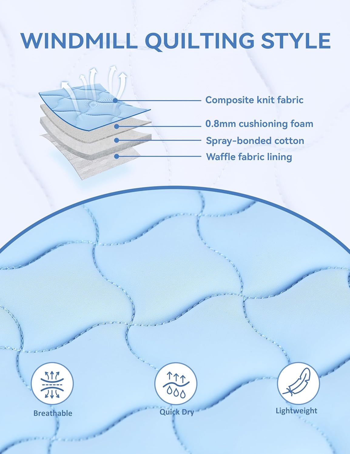 - Non-Slip Stability: Elastic composite fabric surface + 0.8mm high-density sponge interlayer, dual anti-slip technology ensures zero displacement during intense riding; reinforced windmill quilt stitching disperses pressure to prevent fabric deformation.