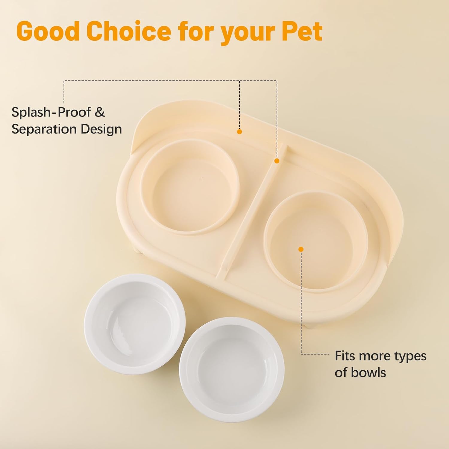 - Splash-Proof and Partition Design: Our cat bowls are designed with a splash-proof high edge to minimize food spills around the feeding area. Also having a dividing line between two cat bowls reduces cat food falling into the water bowl. Keep your home floor clean.