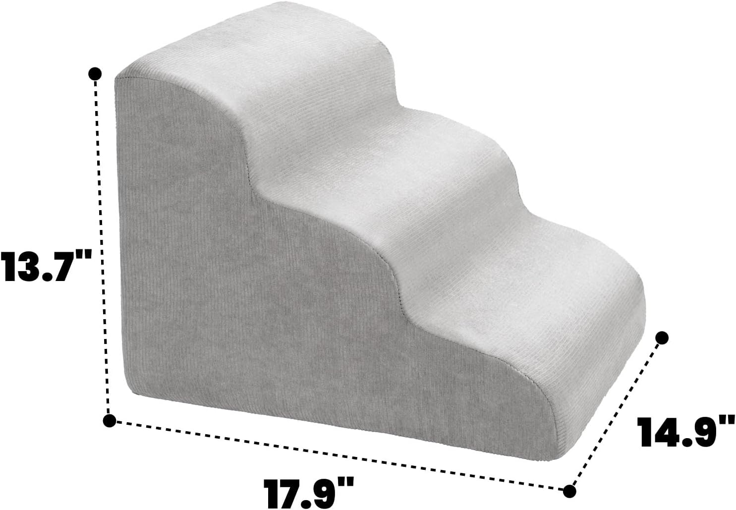 MEWANG Dog Stairs for Small & Medium Dogs and Old Cats –3/4/ 5 Steps High-Density Foam Pet Ramp for Bed & Couch, Non-Slip, Washable Cover, Grey (Round Corner, 3 Steps: 17.95''×14.96''×13.70'', 2)