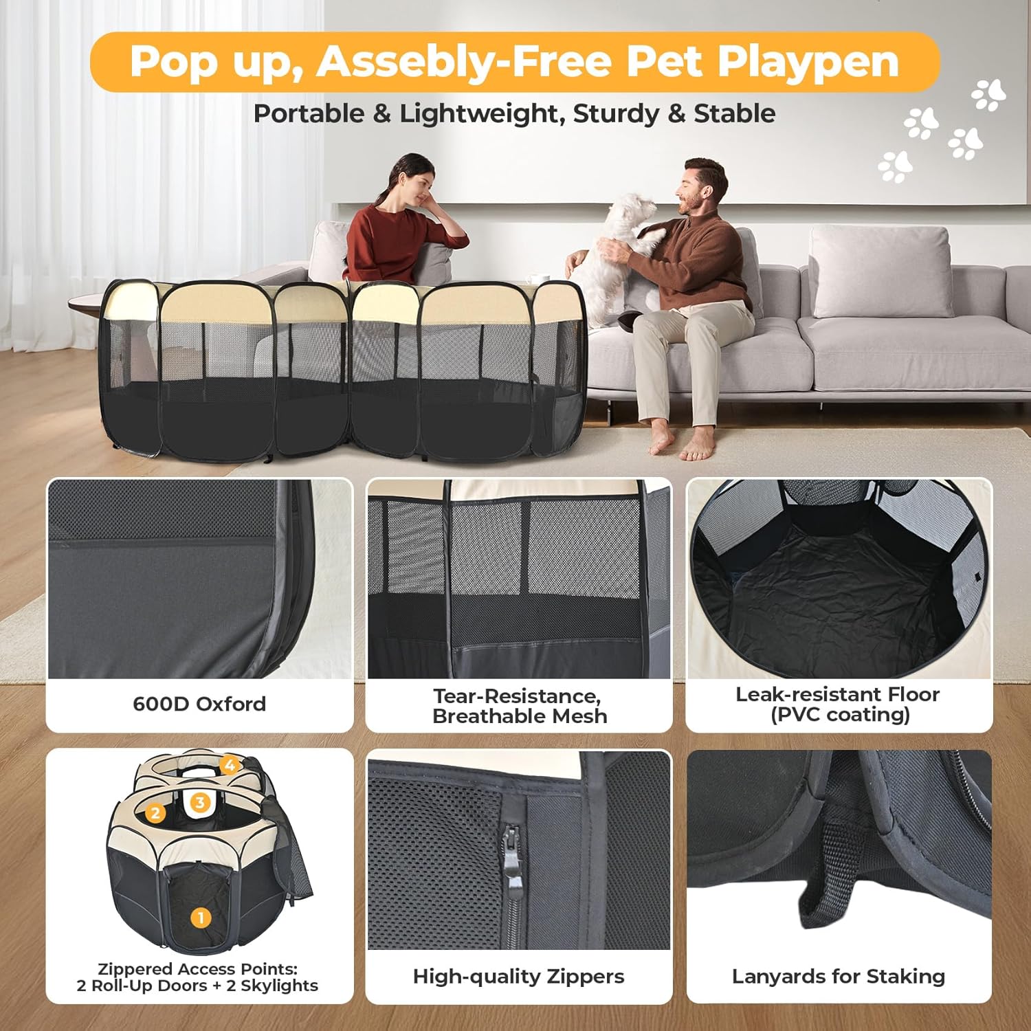 - ๐๐๐๐ฏ๐ฒ-๐๐ฎ๐ญ๐ฒ ๐๐๐ฌ๐ก & ๐๐๐๐ ๐๐ฑ๐๐จ๐ซ๐: Crafted with heavy-duty tear-resistant mesh and durable Oxford fabric for breathability and visibility, supported by a robust steel frame with reinforced seams for stability. The anti-tip structure and secure zipper closure prevent escapes while ensuring safety, and the spacious, well-ventilated interior keeps your pet comfortable and stress-free during playtime.