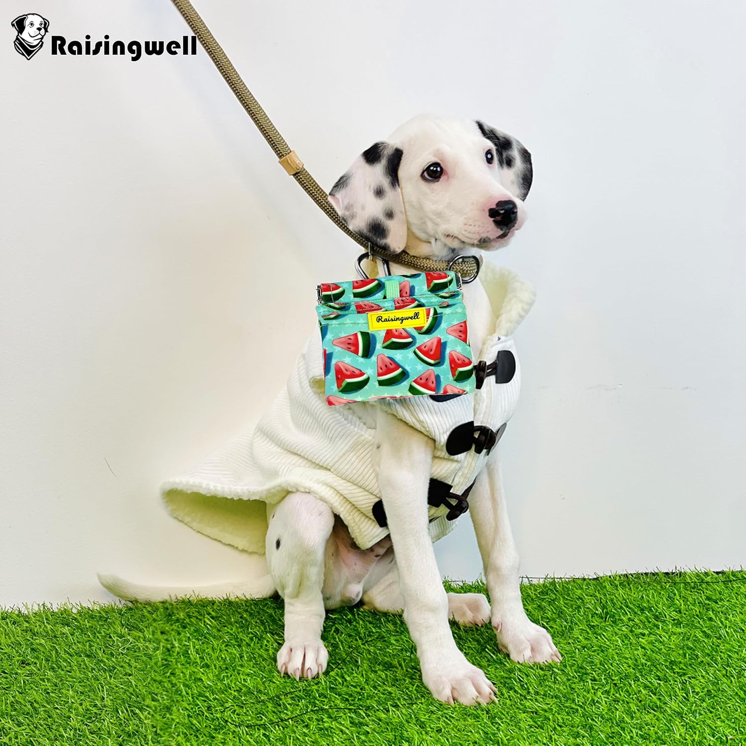 - Durable Material: Raisingwell's dog treat training pouch is crafted from durable, washable, non-toxic vegan fabric, made of pure cotton. In particular, the waterproof lining addresses the issue of difficult cleaning inside the training pouch.