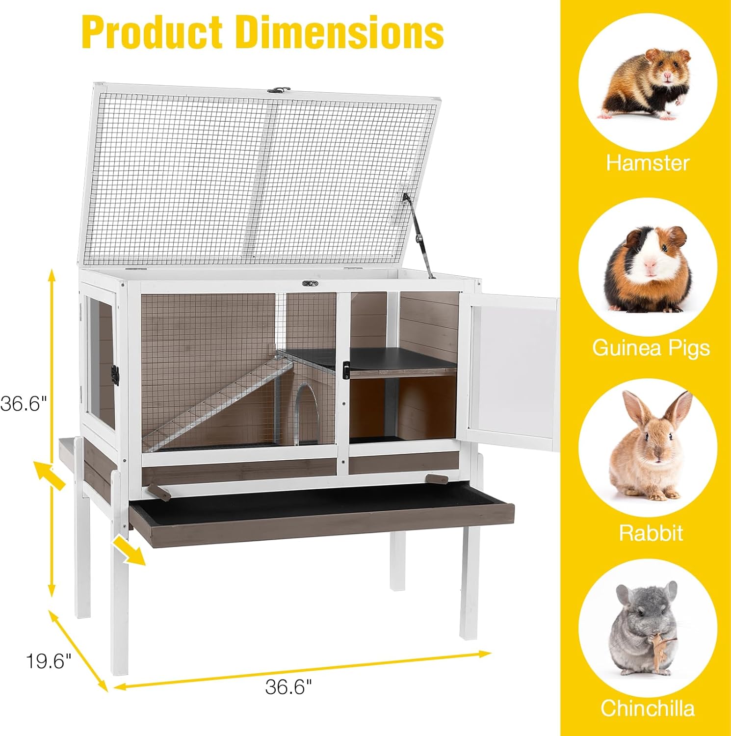 - Spacious and Durable Design:This pet cage is designed with a spacious interior, measuring 36.6" x 19.6" x 36.6", providing ample room for your pets to move around comfortably. The sturdy construction ensures durability, making it suitable for small animals like hamsters, guinea pigs, rabbits, and chinchillas