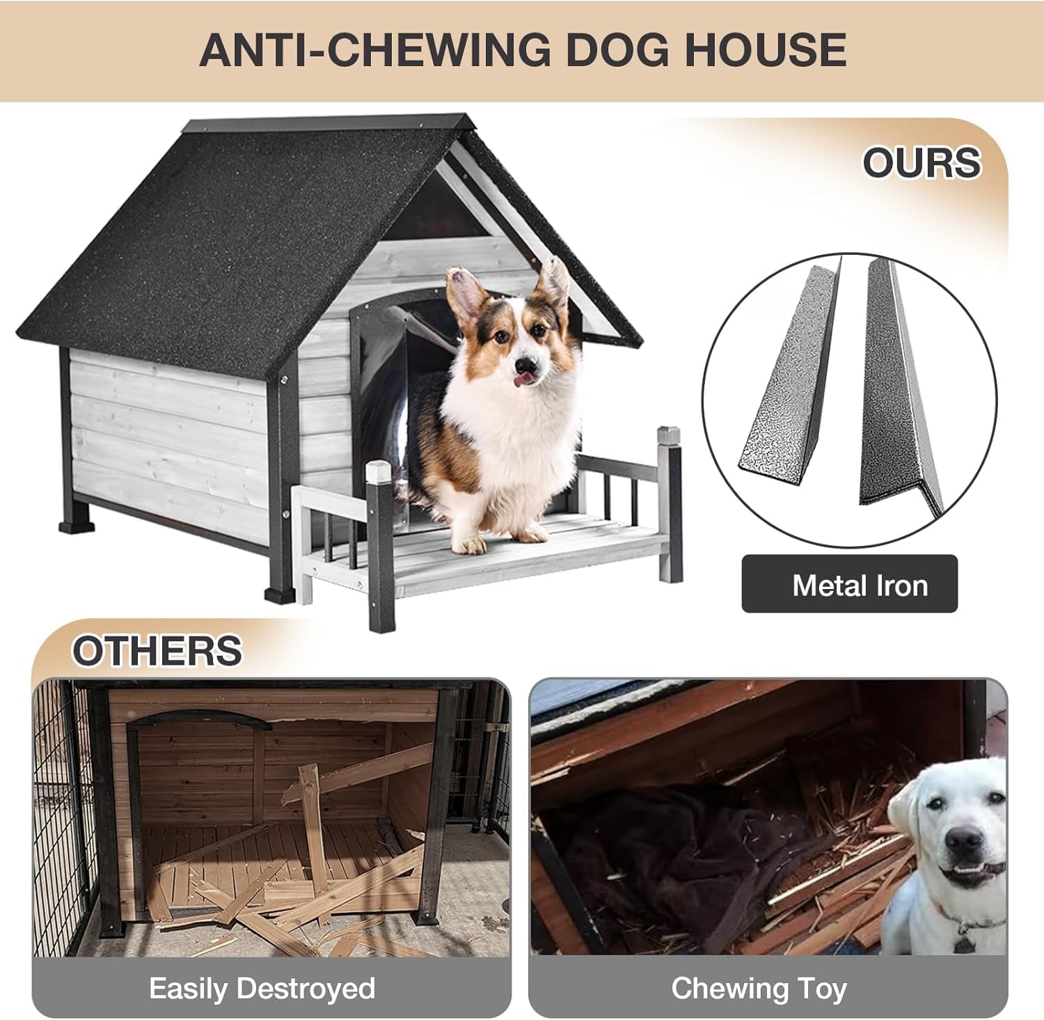 - DURABLE IRON FRAME PROTECTION: Our Dog House boasts a unique Iron Frame that stands up to even the toughest chewers. Its durability gives you peace of mind. With this sturdy structure, your pet's shelter is built to last