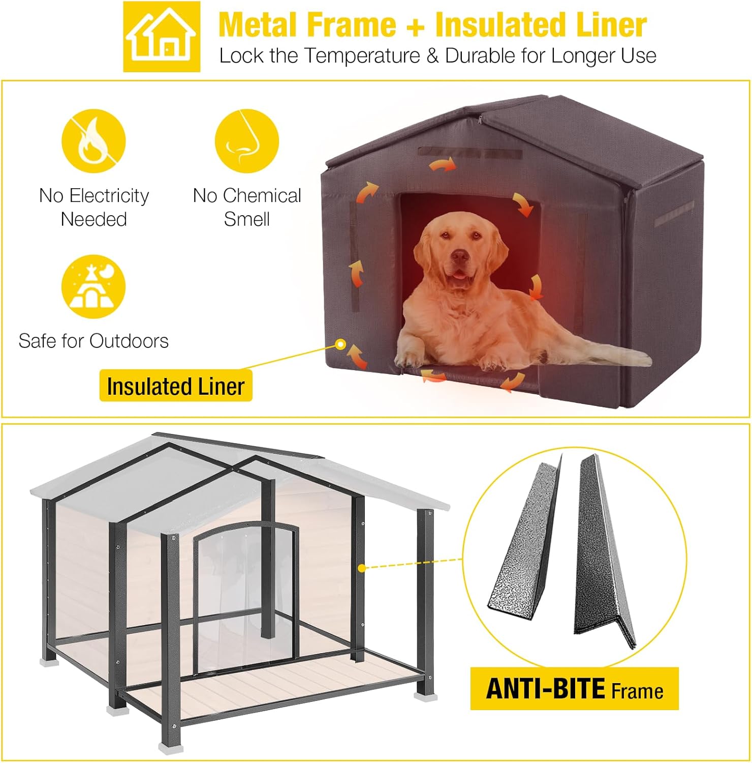 - Sturdy Wood And Metal Structure: Large dog house reinforced with a metal frame and thick solid wood panels for enhanced durability and long-term outdoor use