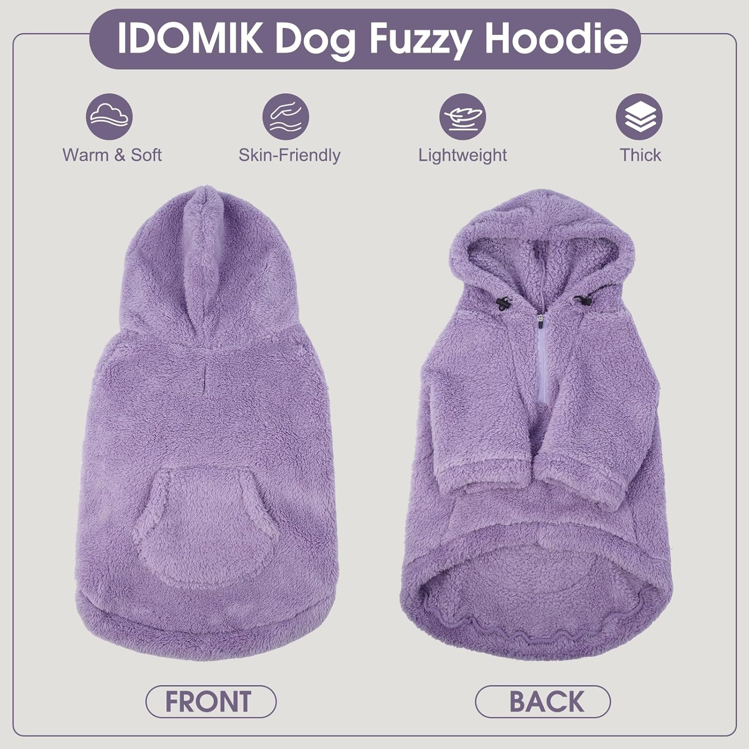 IDOMIK Fuzzy Dog Sweater with Adjustable Hood, Warm Fleece Dog Sweater Hoodie with Harness Hole & Pocket, Pullover Sweaters for Large Dogs, Fuzzy Hooded Sweatshirt for Fall Winter Christmas,Purple,3XL