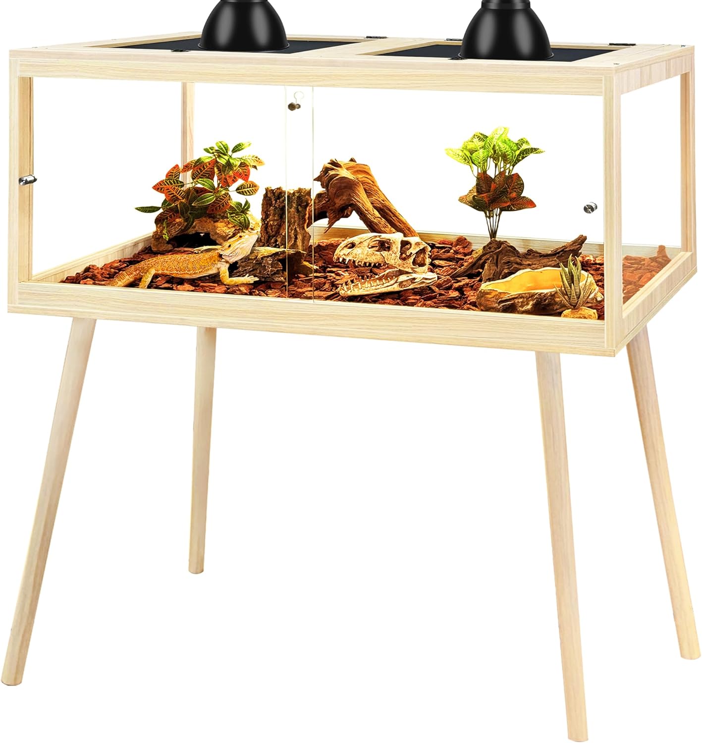 - 【Premium Wooden Reptile Habitat】Give your reptiles a safe and dependable home. Crafted from solid wood core with double sided water-repellent coating, this enclosure is built to last while maintaining a dry and stable environment. Specially designed for terrestrial reptiles (not for aquatic species), it provides a reliable space where your pet can thrive every day.