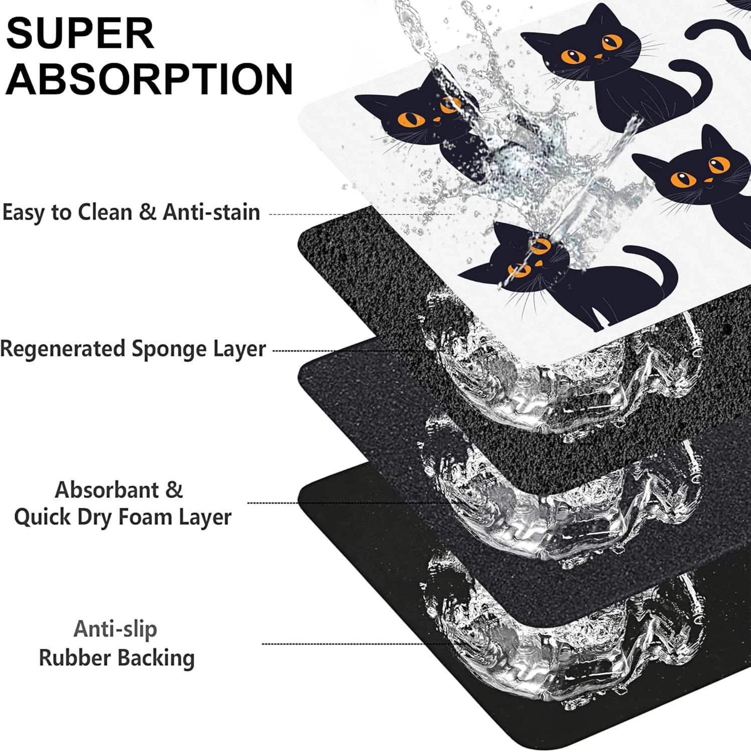 Cute Black Cats Dog Food Mat-Absorbent Pet Feeding Mat for Food and Water Bowl, Quick Dry Dog Placemat with Rubber Backing-No Stains Pet Supplies for Messy Drinkers 12"x20"