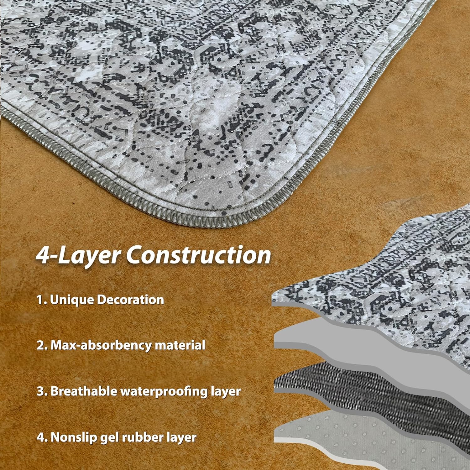 - A Cutting-Edge Waterproof and Leak-Proof Design: Our multi-layered reusable dog pee pads feature super absorbent surface, breathable leakproof coating and upgraded non-slip backing that prevents leaks and odors, effectively absorbing liquid. These washable pee pads protect your floors and furniture from dog scratches, hair and drool.