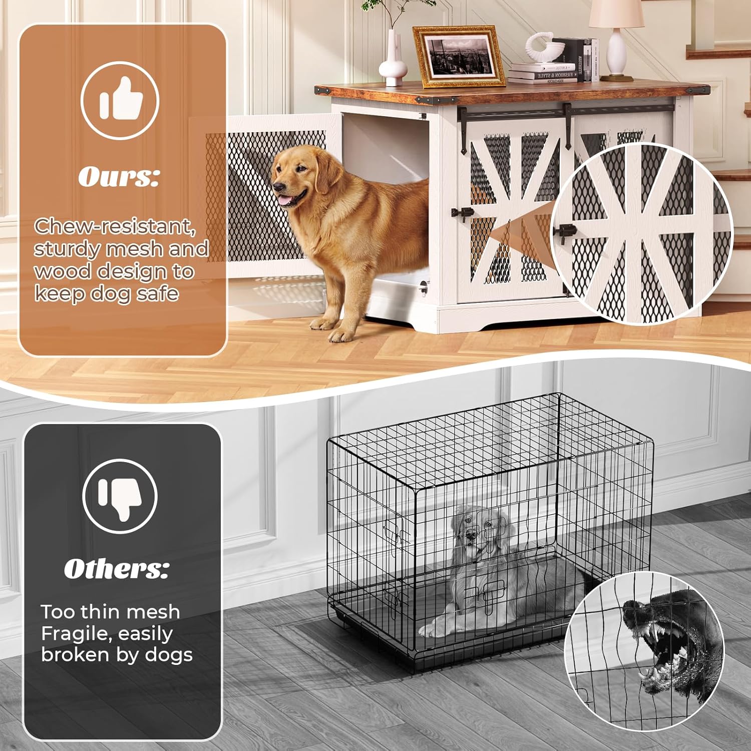 - Sturdy & Easy to Clean: The surface and the inner bottom of the XL dog crate on the top are made of sturdy wood that is easy to clean, no worry about the dogs' mess
