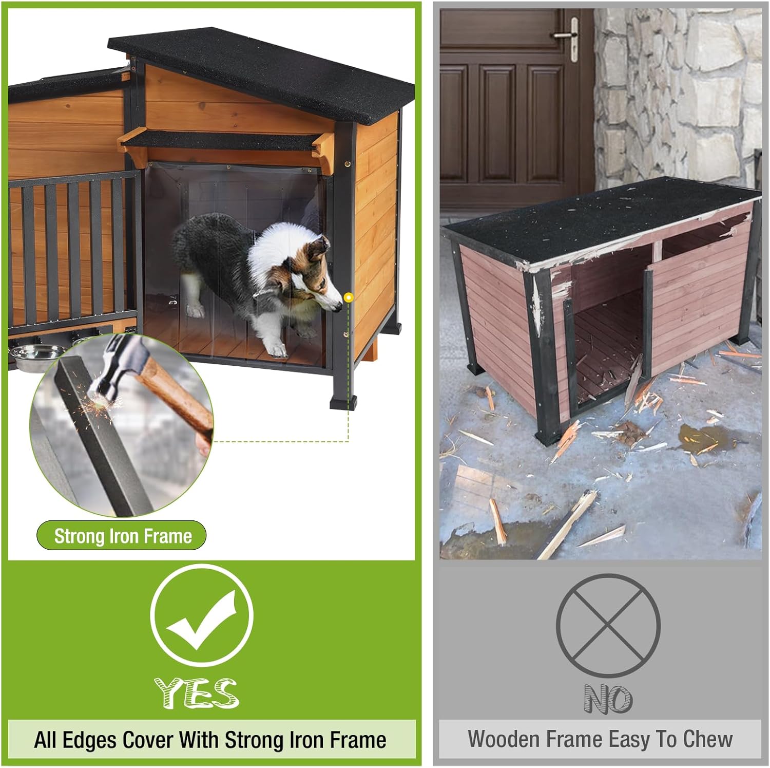 - Spacious, Comfortable Shelter: Generous 39.7"L x 25.5"W x 32.2"H size offers ample room for your dog to rest, relax, and stay safe outdoors. Perfect for backyards, patios, or porches