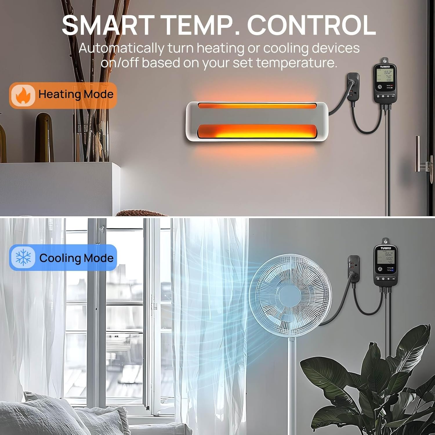 [2 Pack] TURBRO Smart Temperature Controller Heating Cooling, WiFi-Enabled Thermostat with Timer and Temperature Monitoring for Home Brewing, Seedling, Greenhouse, and Reptile Terrarium