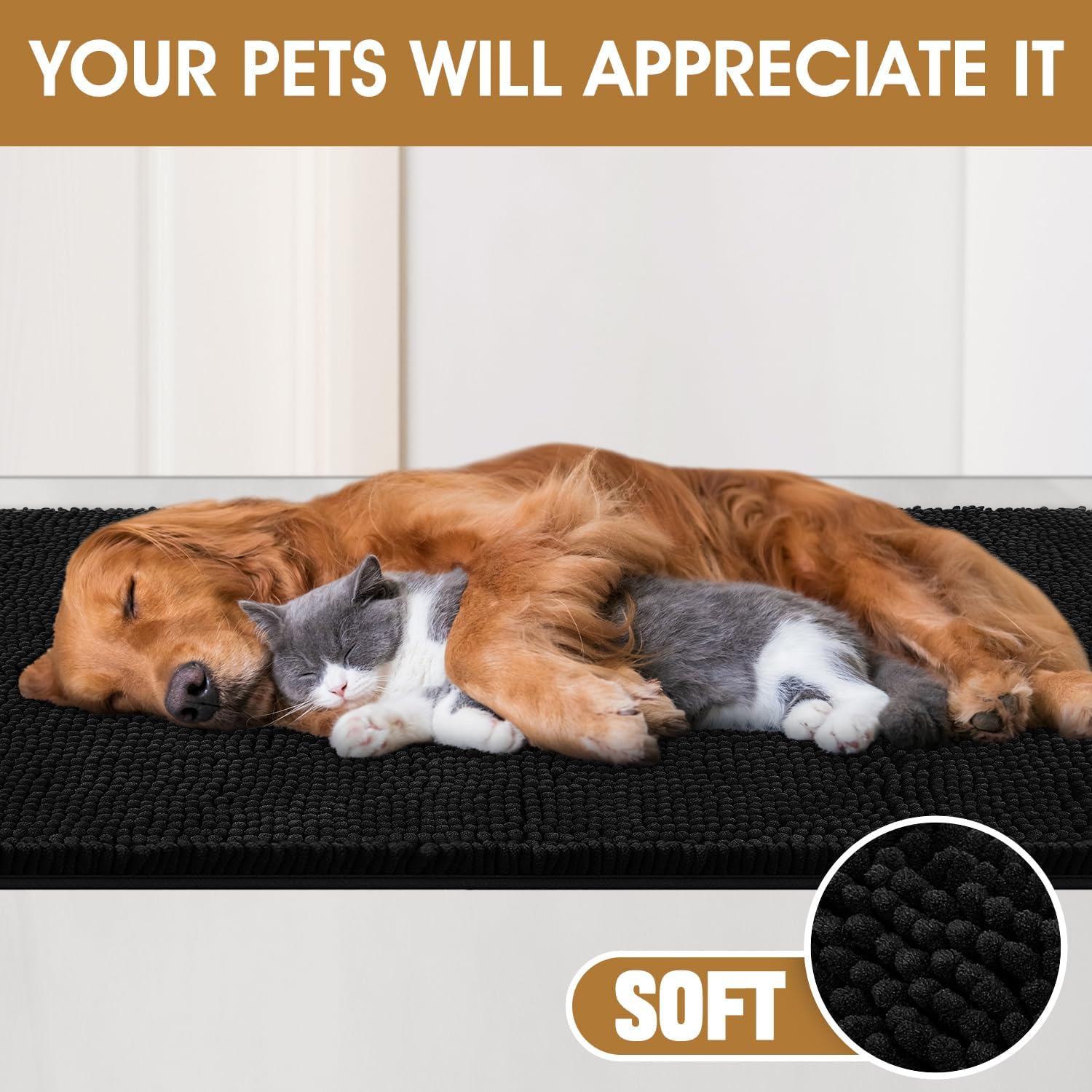 Dog Door Mats for Muddy Paws, Chenille Absorbent Door Mats, Non Slip Heavy Mud Mat for Dogs, Soft Indoor Door Mat for Entryway, Mud Paws, Inside Floor,36" X 24", Black