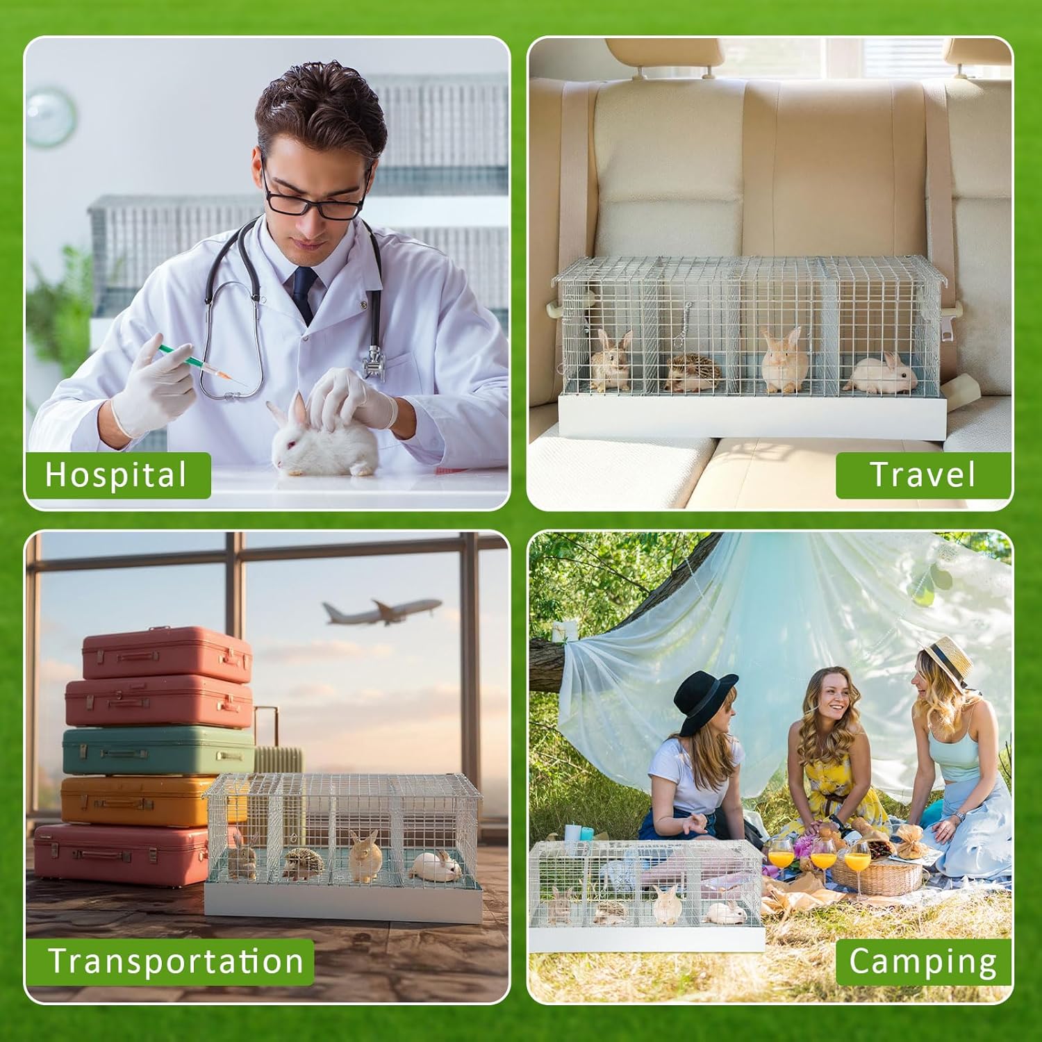 - Easy Transport with Carry Handles: designed for both short trips and extended outings, this bunny transport cage comes with sturdy handles on both sides for effortless carrying. Remove the divider to create a larger shared space when transporting more than one rabbit at a time. Ideal for travel, vet visits, outdoor events, or even as a temporary indoor pen
