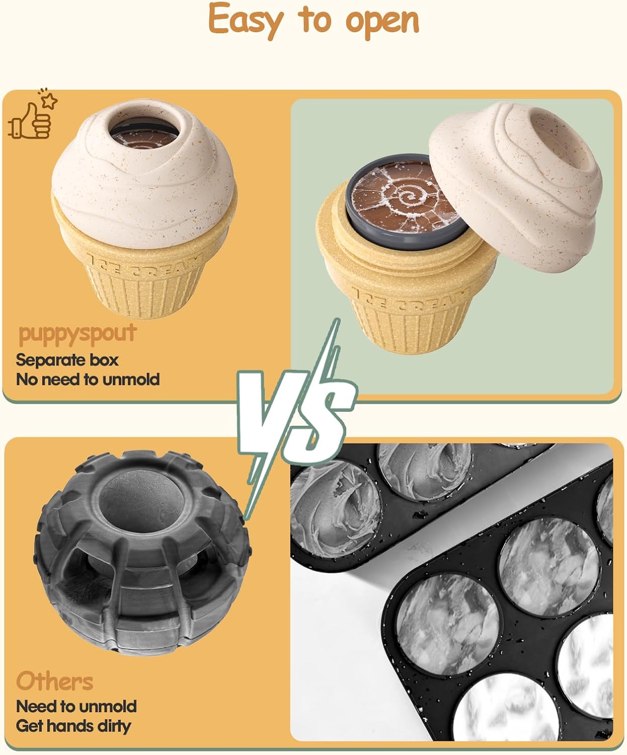 - Interactive Treat Dispensing Toy: Fill it with dog treats for mealtime fun, or create frozen treat in seconds! When you want to cool your pets down, mix peanut butter, yogurt, or snacks into the included container, freeze, and pop it straight into the toy, skip the messy mold removal step. Create fun treat surprises for your pet!