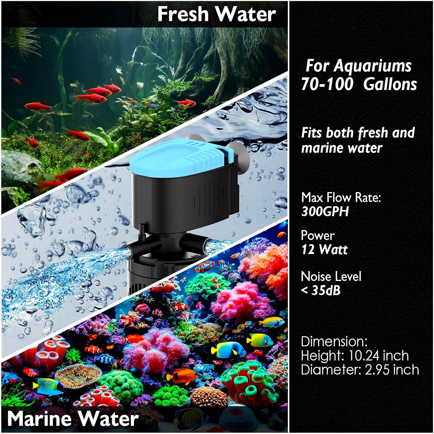 - SAFETY - The aquarium filter is fully submersible with epoxy sealed motor. Each fish tank filter has been submerged in water and tested with super high voltage to ensure the safety.