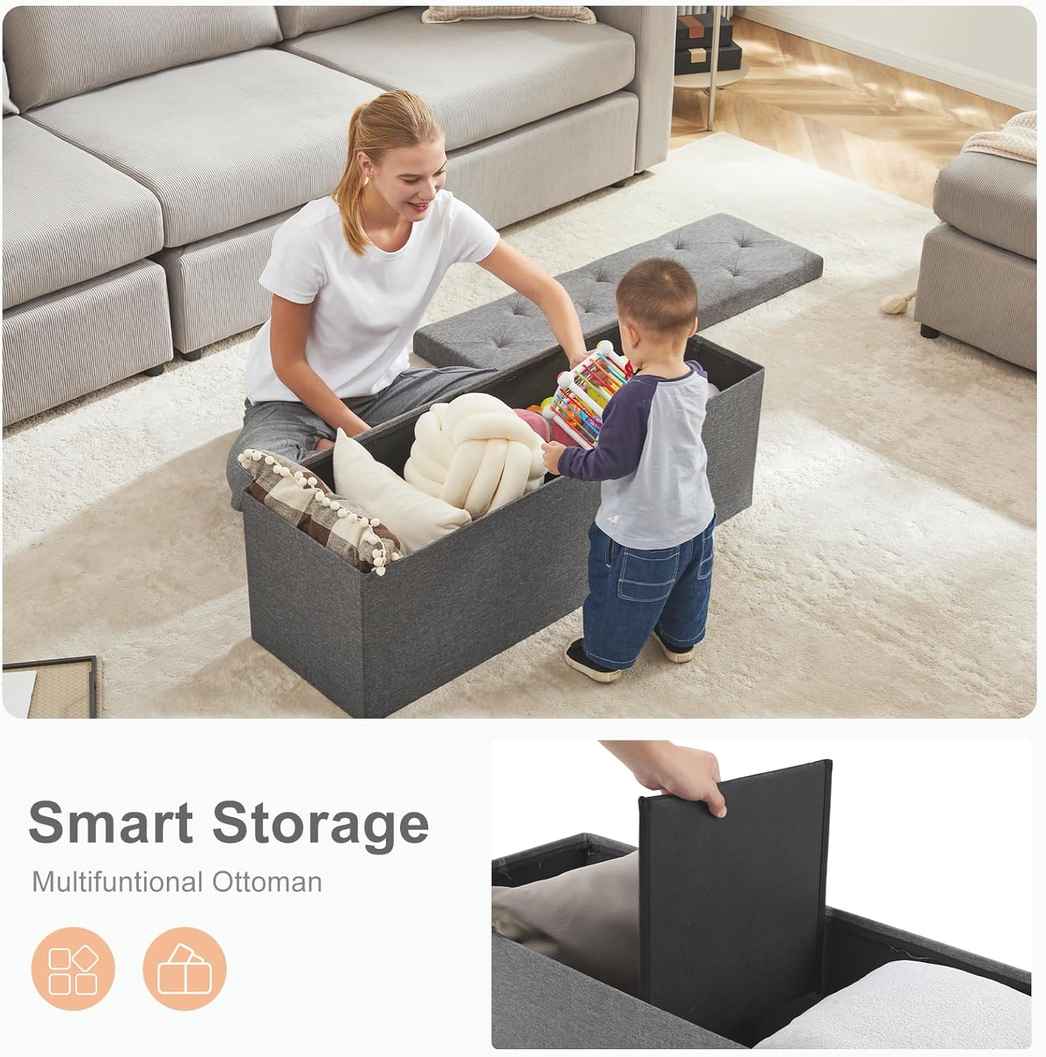 - 【Durable & Cozy】: This storage ottoman bench features thick MDF boards for solid stability. Its top is padded with high-density foam and wrapped in elegant gray linen fabric, offering both coziness and airiness. It can bear a static weight of up to 660 pounds.