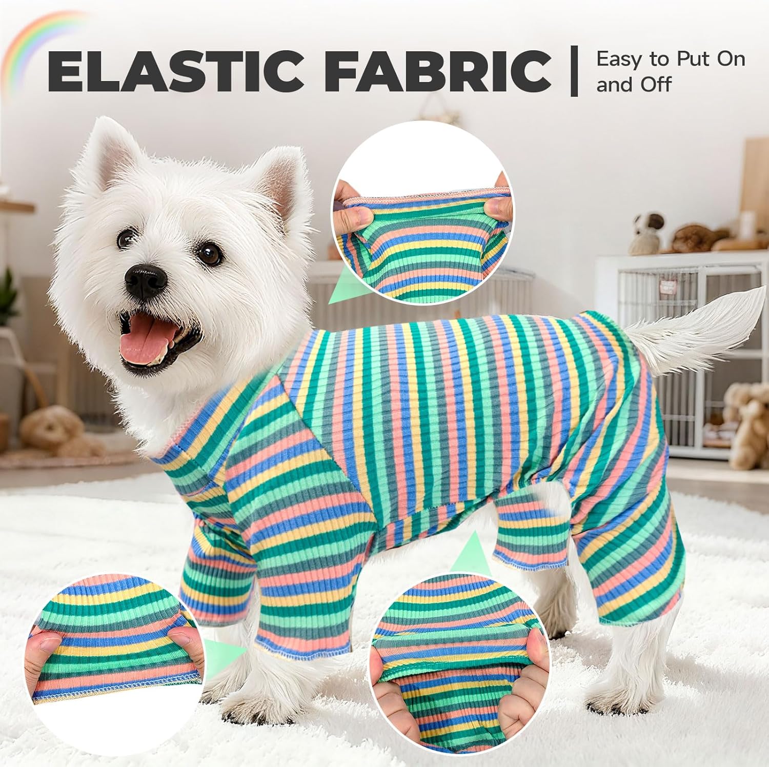 BAEJMJK Striped Dog Pajamas Stretchy Cute Four-Legged Boy Girl Dog Clothes with Sleeves Comfortable Dogs Jumpsuit Colorful Pet Puppy Outfits Apparel for Small Medium Dogs Cats(Green,Small)