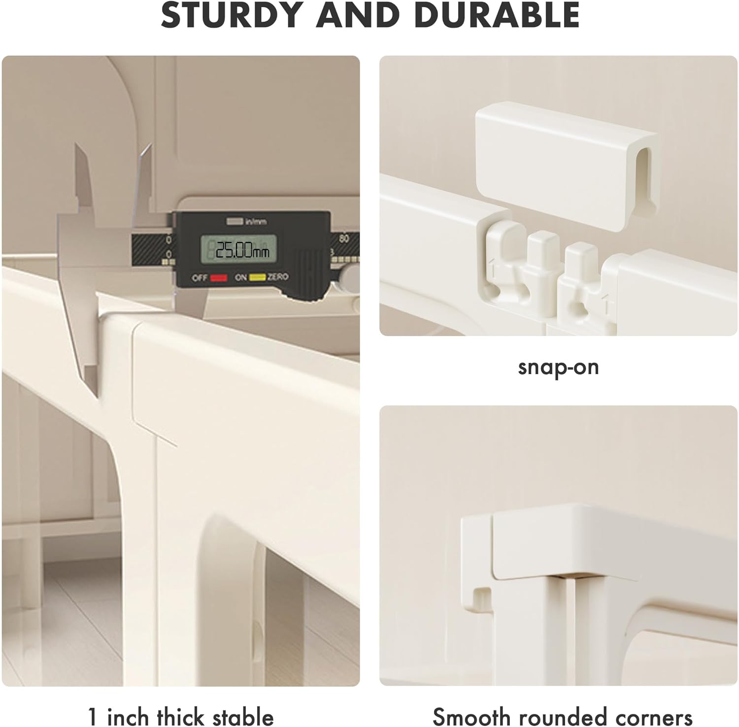 - 【Modular & Customizable Layouts】You can build rectangular, L-shaped, or linear configurations to fit any room. It is expandable with extra panels (sold separately) for larger spaces. It has versatile uses: as a playpen, pet barrier, crate, whelping box, or for indoor/outdoor yards.