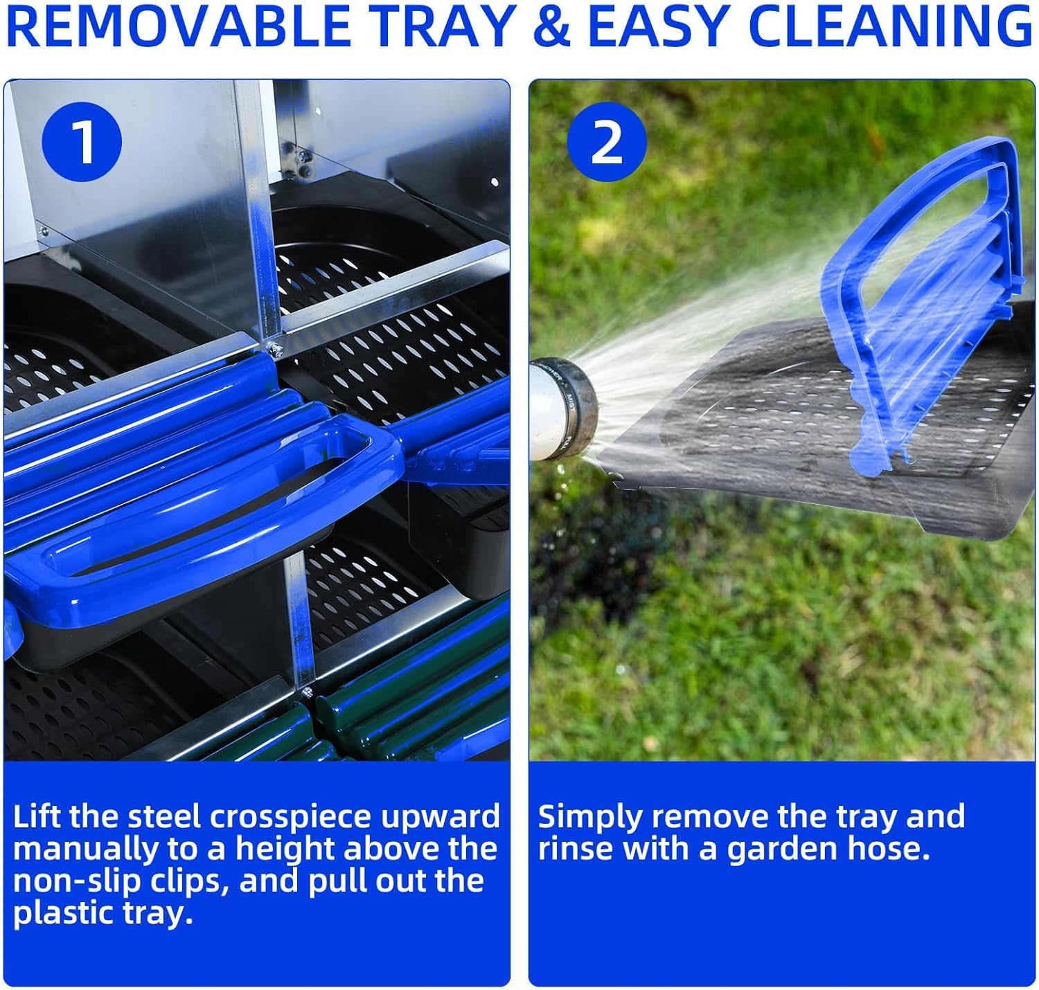 - EASY CLEANING: The small holes in the bottom of this egg nesting box prevent moisture and debris from accumulating, and the removable tray makes cleaning easy. Simply rinse with water to keep the nesting box clean and tidy, ensuring the health of the hens.
