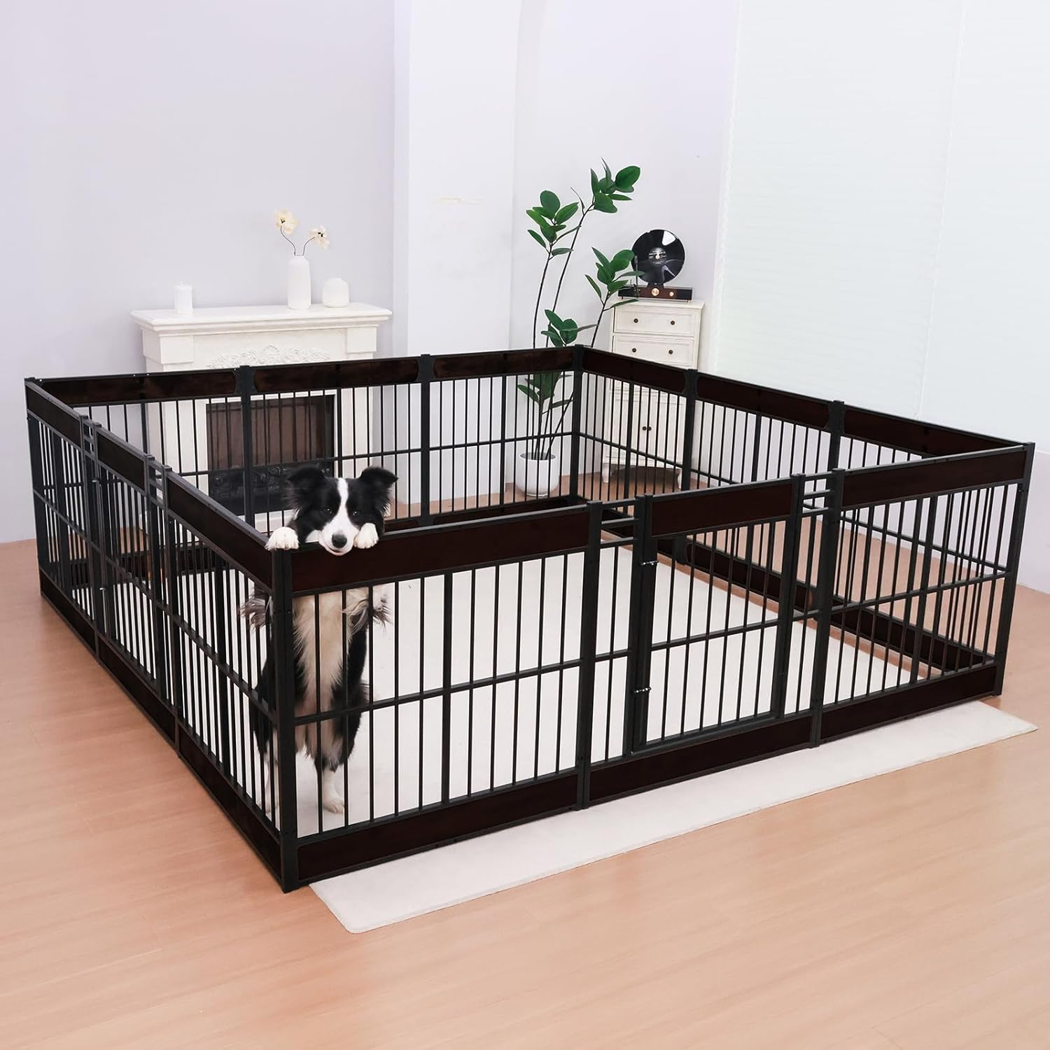 - 【Sturdy Construction】 Our puppy enclosure is made of durable metal pieces and wood, which increases the service life and durability, strong and durable, not easy to be damaged by small pets. It also adds beauty and can be better integrated with your decoration. The rounded edges are designed to prevent pets from being scratched and keep our pets safe.