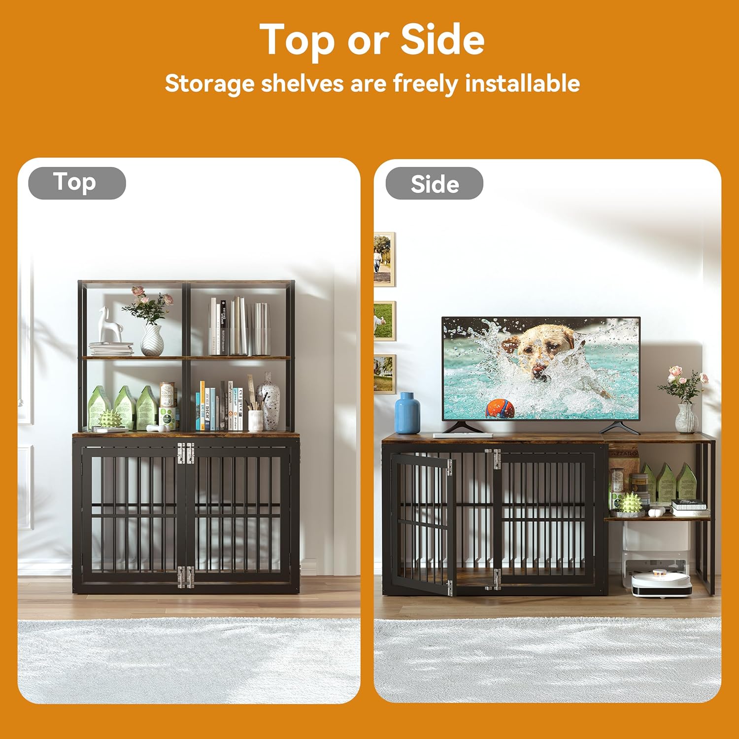 - Woodeen Dog Crate with Storage: This dog crate with shelf is elaborately designed with a 4-layer open storage rack, providing you with flexible and diverse storage space. Whether it's pet supplies such as dog food, snacks, and toys, or daily items like books, ornaments, and storage boxes, they can all be neatly arranged, truly achieving multiple uses with one item and making your home space neater and more beautiful, is certainly be a perfect extra large dog crate with shelves