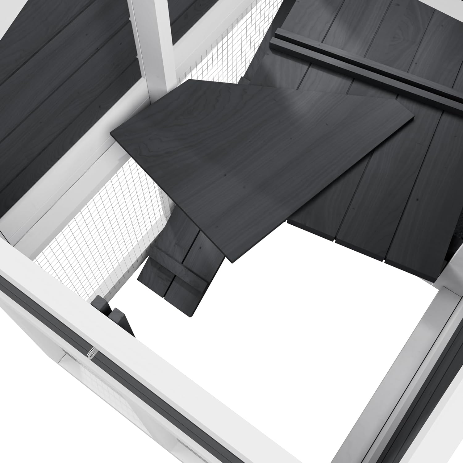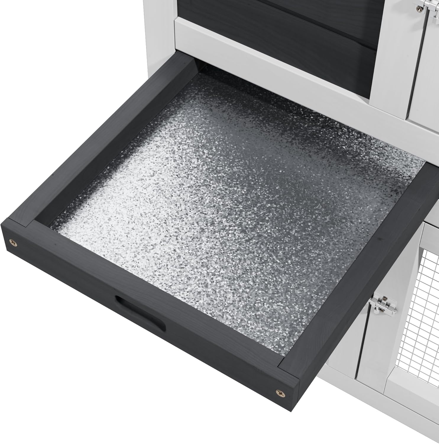 - 4. 【Easy-Clean Design - Superior to Standard Chicken Cages】 Features a 1.8" deep removable tray (deeper than most chicken pens) with leak-proof plastic surface. The openable roof provides full cleaning access - more convenient than traditional chicken coop designs. Perfect for hassle-free maintenance whether used for rabbits or adapted for poultry needs.