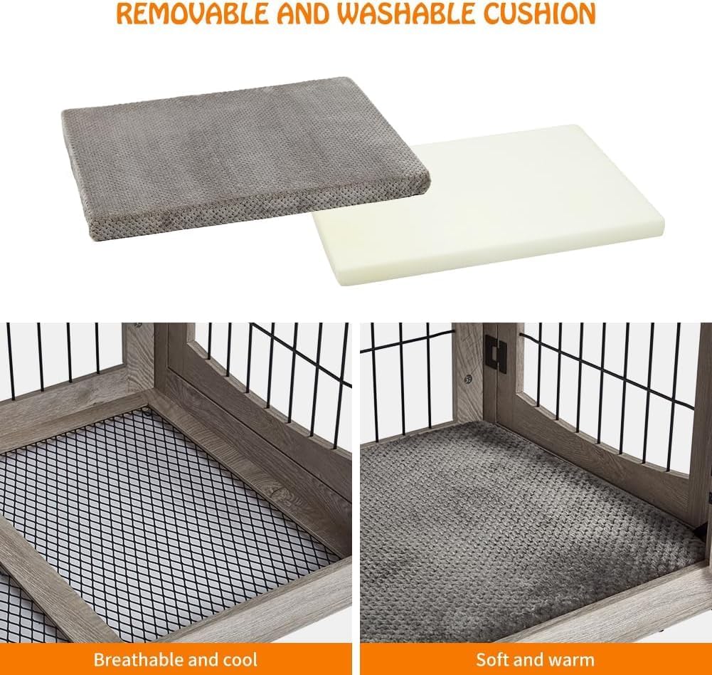 - ๐[Double-Door Design and Double Drawer] The crates for dogs indoor has two doorsโa front door and a side doorโfor easy access for your dog. The double-door design adapts to different spaces, and you can choose to have the side door open left or right. It also comes with two drawers for additional storage space.